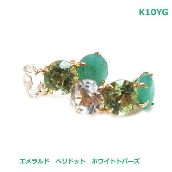 商  品  名K10YG マルチカラーピアス エメラルド ペリドット ホワイトトパーズ■774028-050