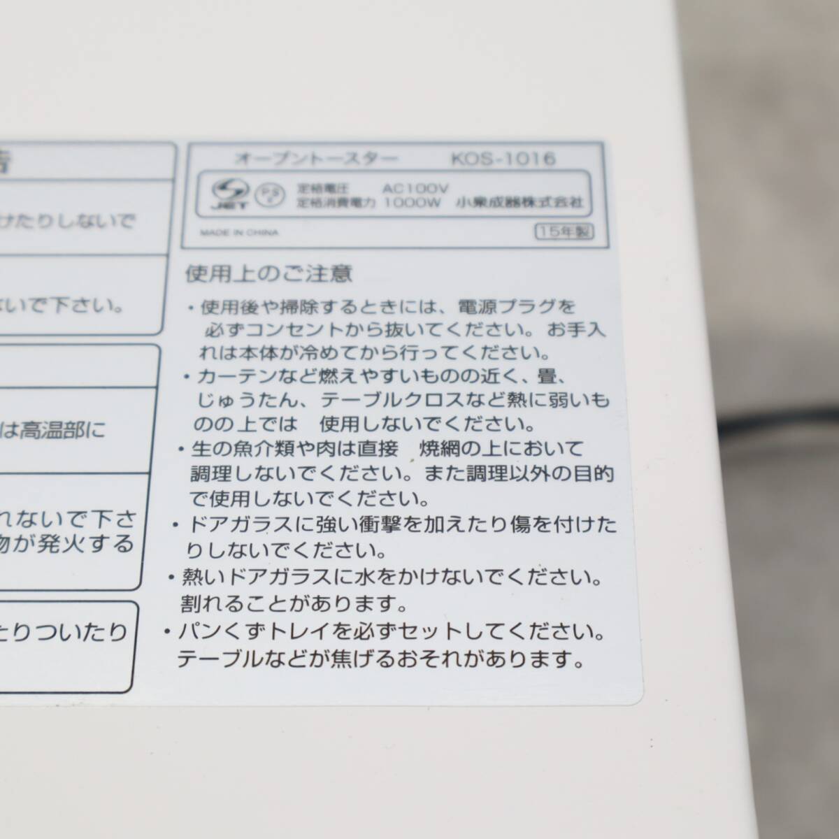 △ 動作確認OK|オーブントースター ホワイト|KOIZUMI 小泉 KOS-1016 |1000W 15年製■P1960