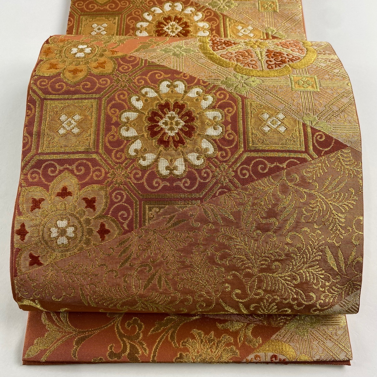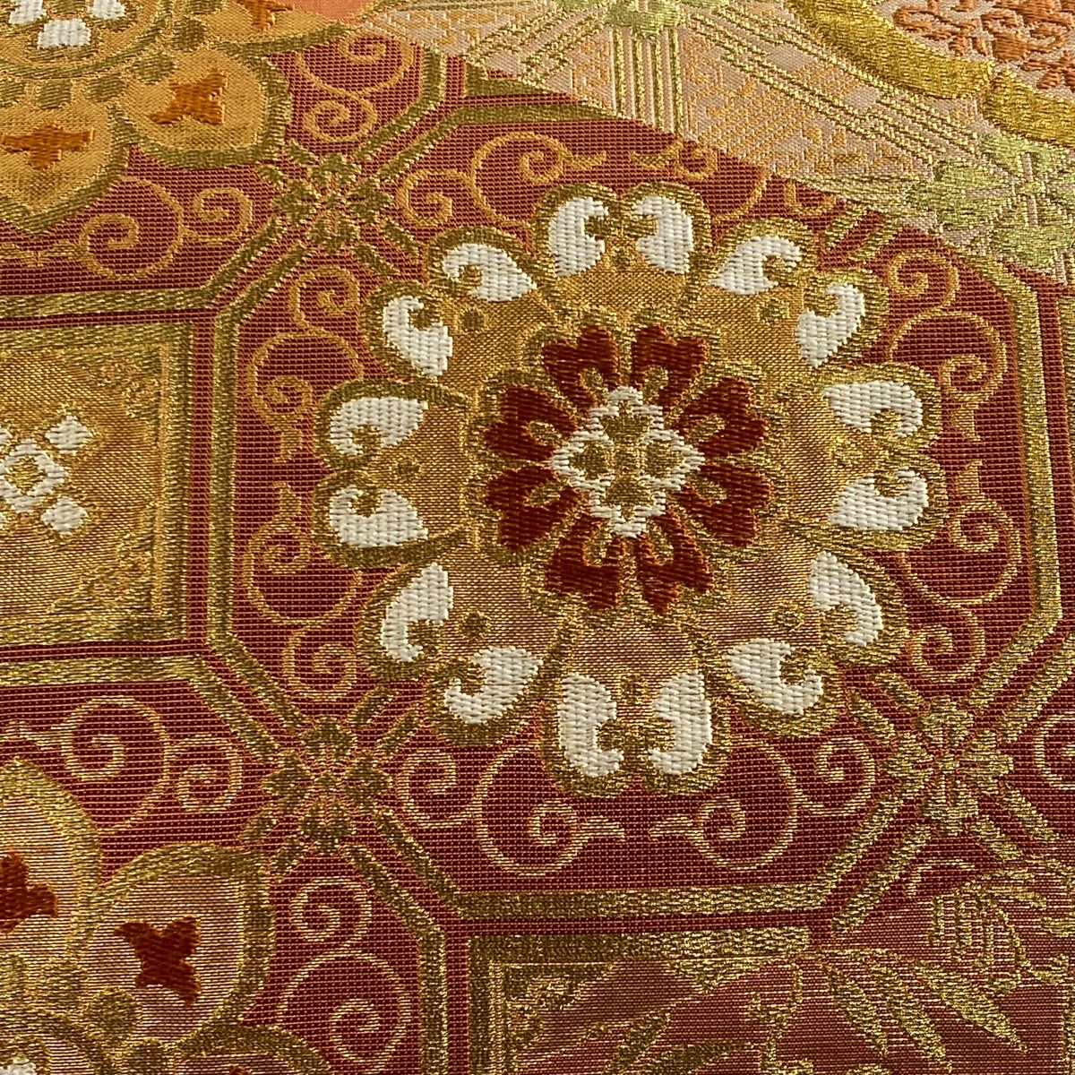 | 袋帯 美品 秀品 蜀江華文 花唐草 金糸 箔 茜色 六通 正絹 【中古】 |