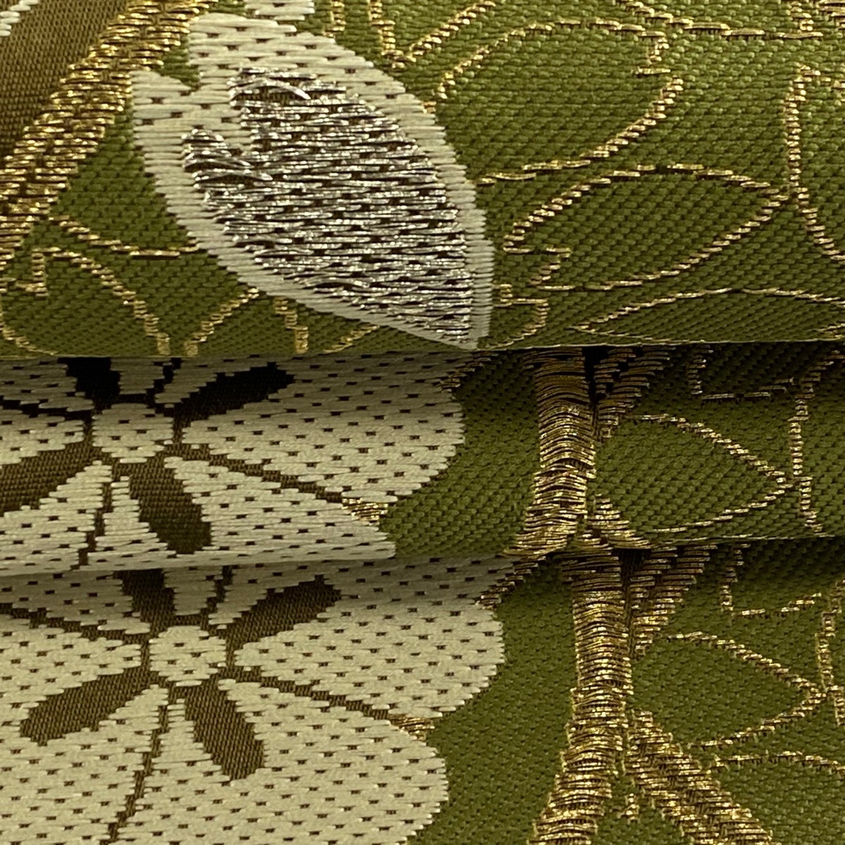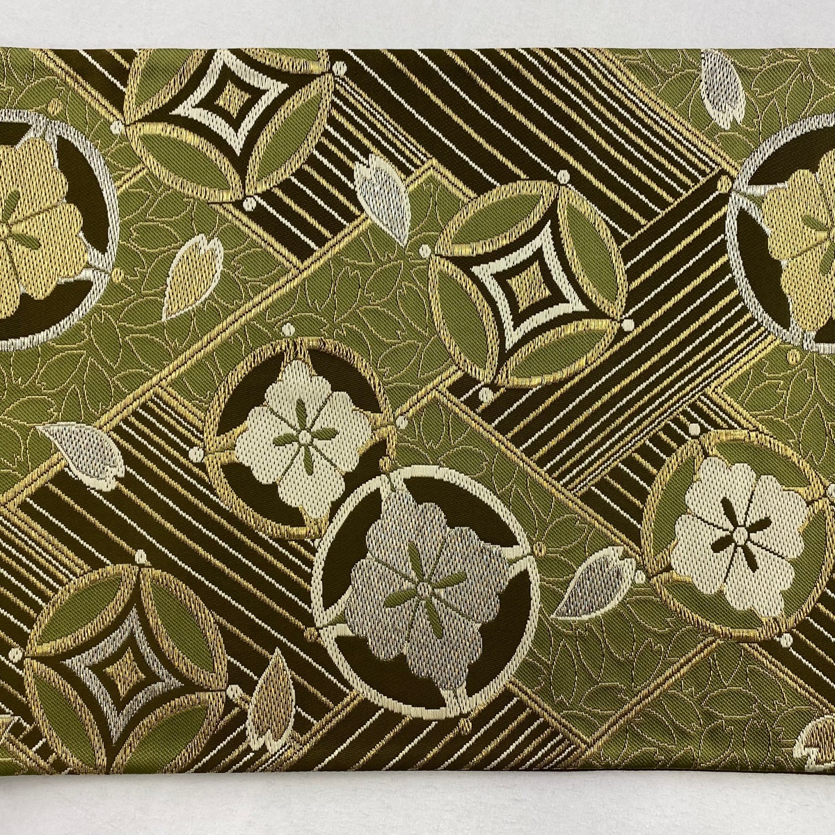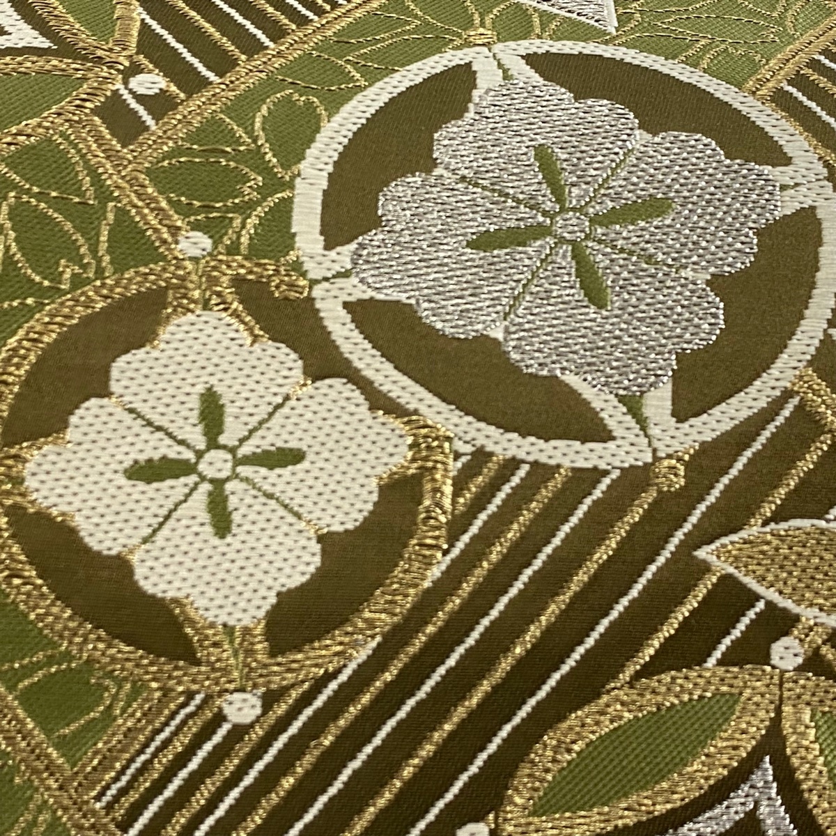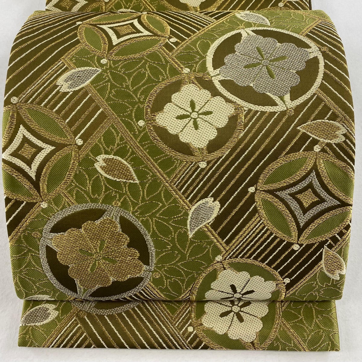 | 袋帯 美品 秀品 花 七宝 金銀糸 茶緑色 六通 正絹 【中古】 |