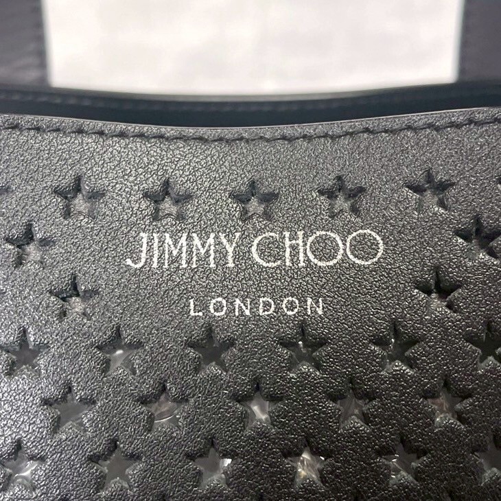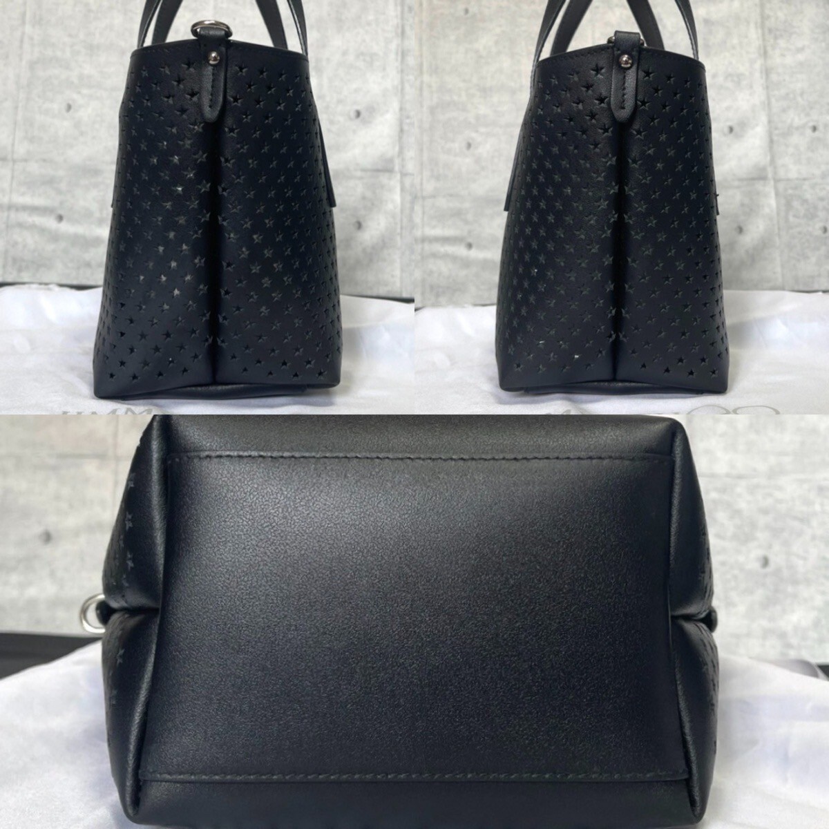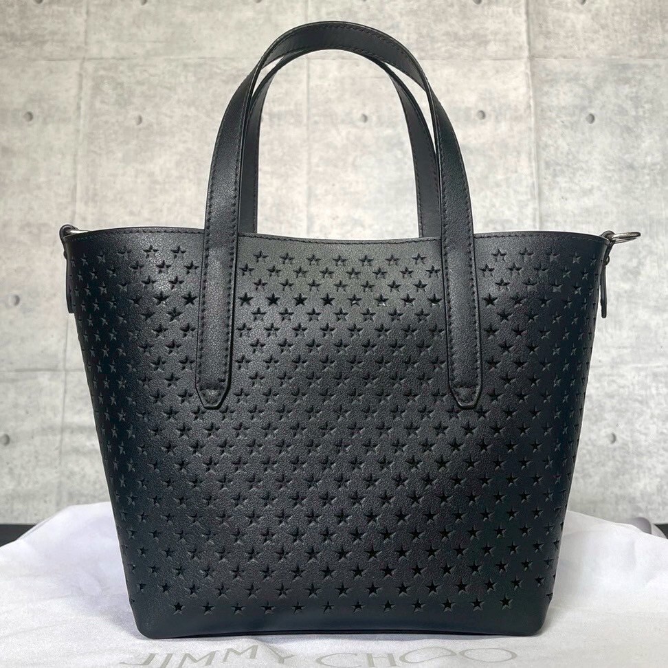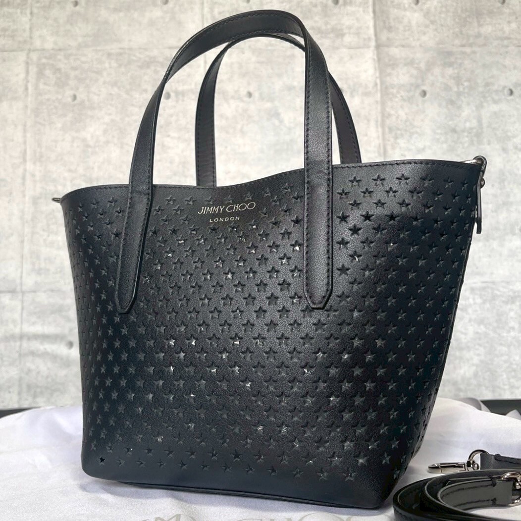 ◎未使用級 JIMMY CHOO MINI SARA BLACK ブラック 黒 ミニサラ ジミーチュウ パンチングスター 2WAY ハンドバッグ トートバッグ レザー