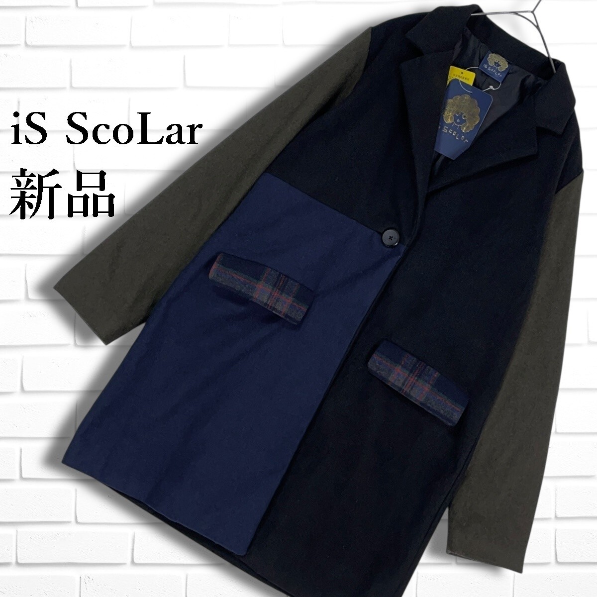 ◆新品◆ iS ScoLar イズ スカラー クレイジーパターン 切替 秋冬系 ウールライク チェスター コート レディース M ◆タグ付き 3165H◇