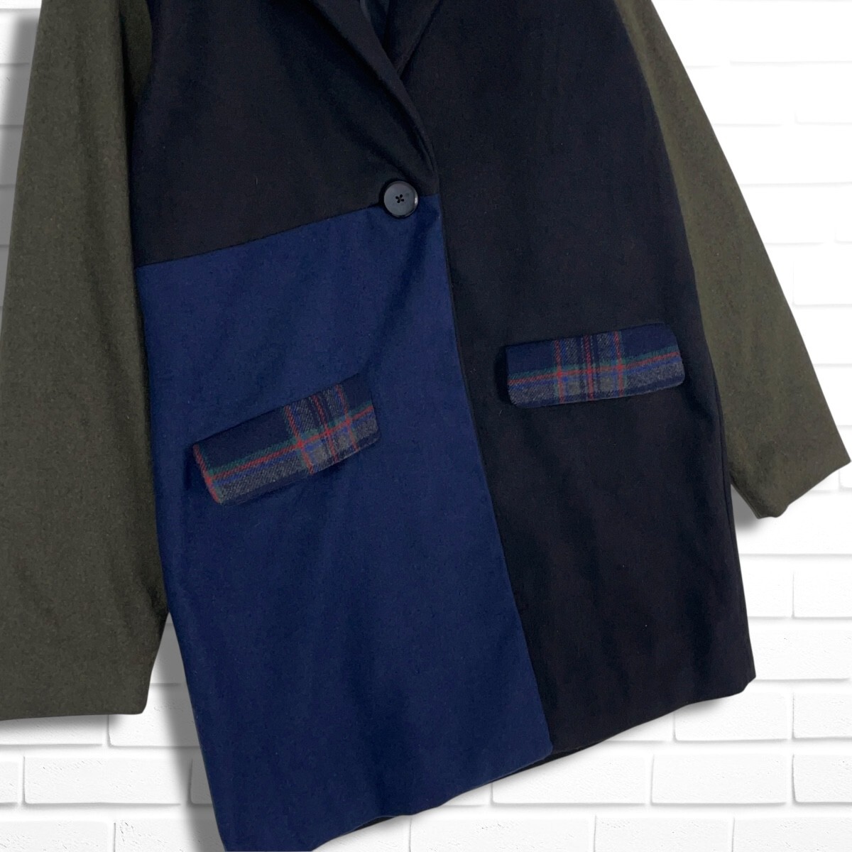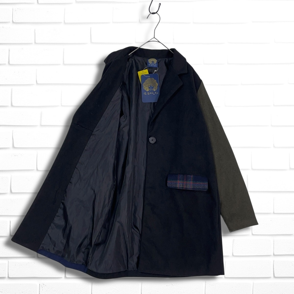 ◆新品◆ iS ScoLar  イズ スカラー クレイジーパターン 切替 秋冬系 ウールライク チェスター コート レディース M ◆タグ付き 送料無料◆ 3165H◇
