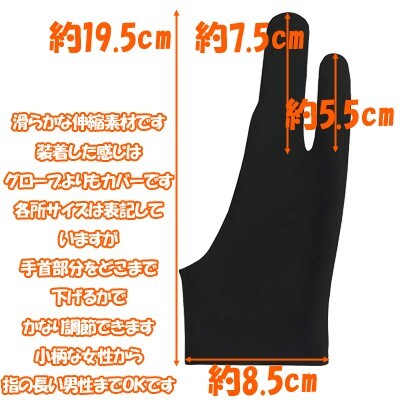 | 商品説明 | 左右兼用の2個セットです ペンタブレットやタッチペン、イラストレーターのための2本指グローブです |