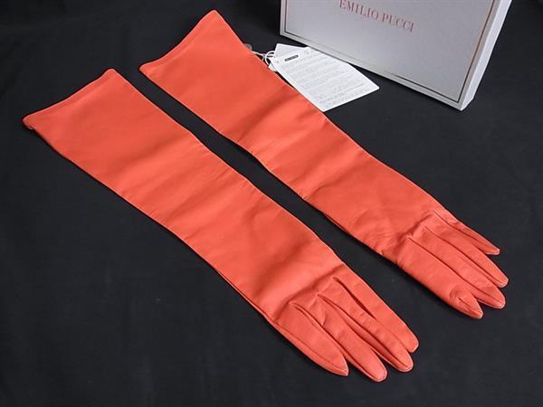 ■新品同様■ EMILIO PUCCI エミリオプッチ ラムスキン100% 手袋 グローブ レディース オレンジ系 BM7520