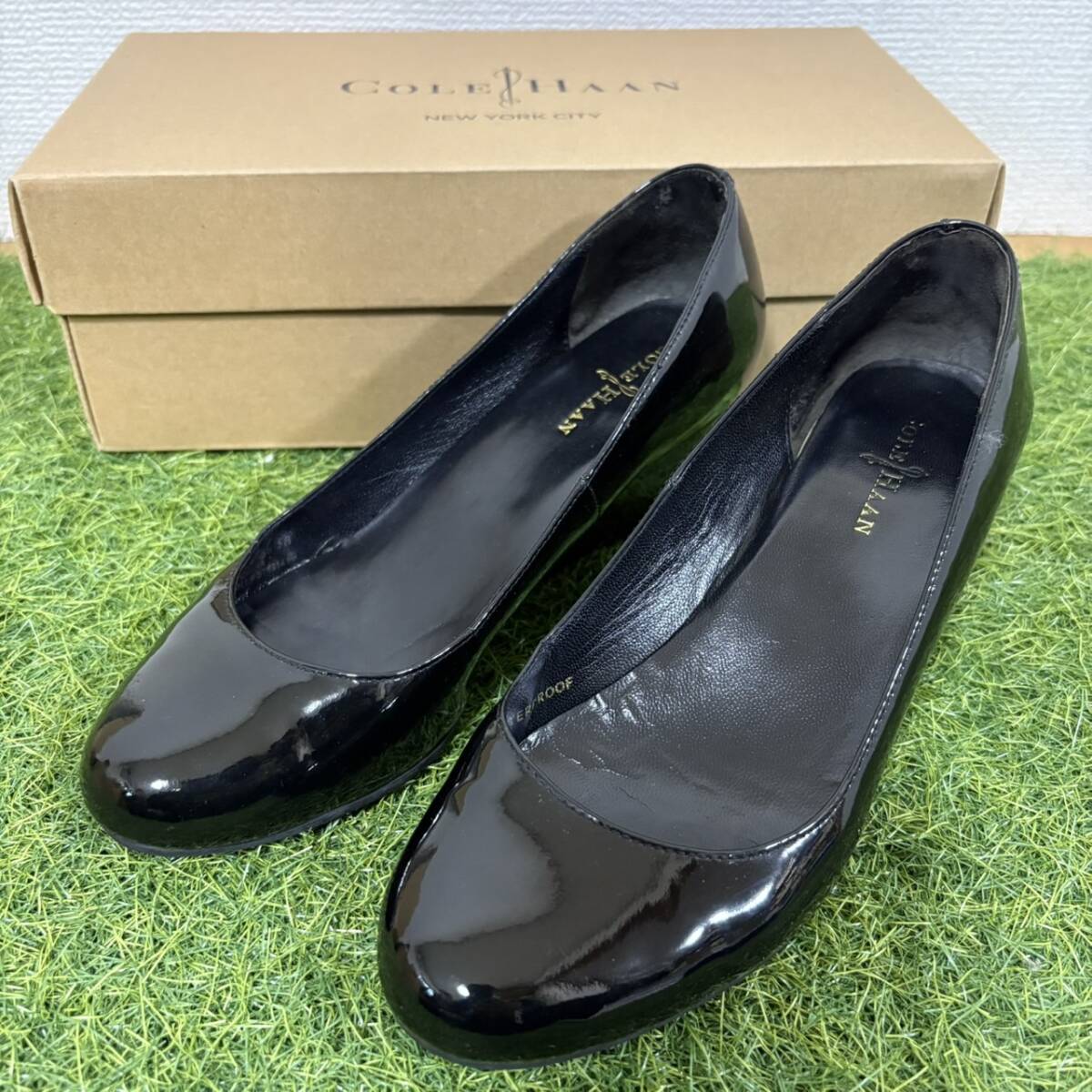 Cole Haan NIKE AIR ラウンドトゥ ウエッジヒール エナメルパンプス ブラック コールハーン ナイキエアー 防水シューズ 通勤 通学 婦人靴
