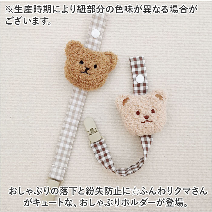 商品説明・・おしゃぶりの落下と紛失防止に☆ふんわりクマさんがキュートな、おしゃぶりホルダーが登場。