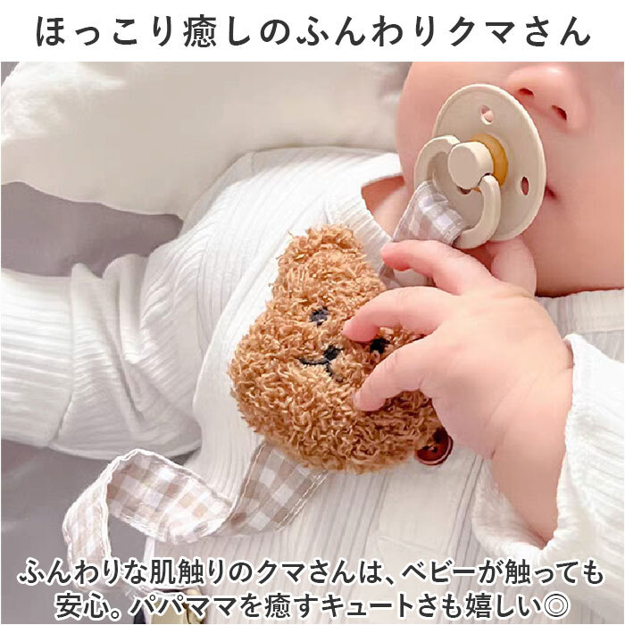 ・ふんわりな肌触りのクマさんは、ベビーが触っても安心。パパママを癒すキュートさも嬉しい◎