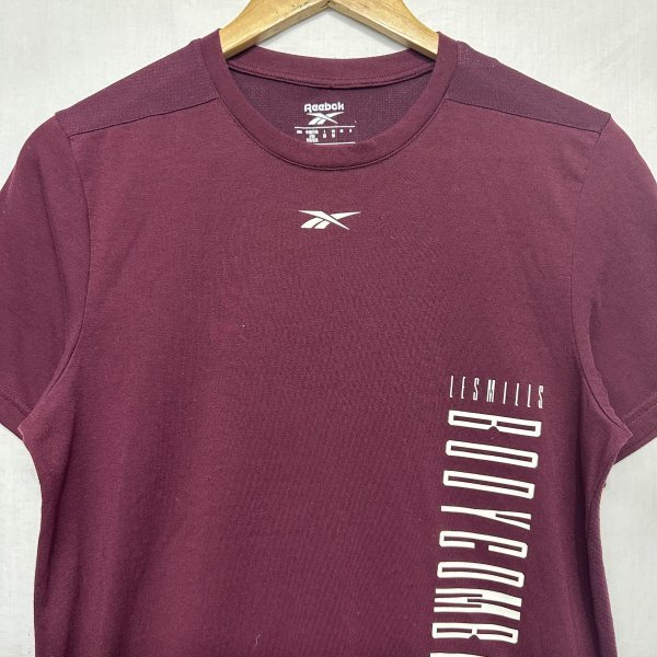 〇Reebok リーボック ショート スリーブ 半袖 T シャツ スポーツ トレーニング ランニング フィットネス ジム ウェア M エンジ色系