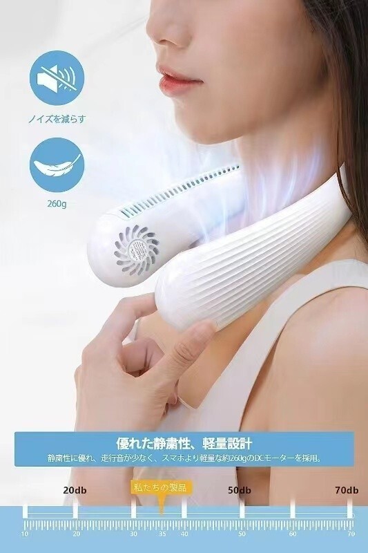 【安全なブレードレスネックファン】従来のネックファンに別れを告げる、ブレードレスデザインのこのパーソナルファンは、髪の毛が絡まる心配がありません。お子様やお年寄りにも安心してご使用いただけます。特にアウトドアスポーツや仕事に適しています。