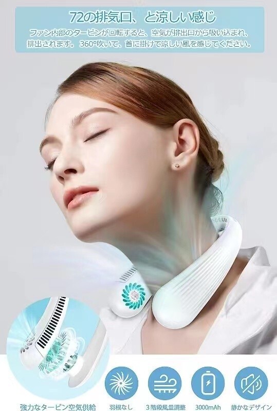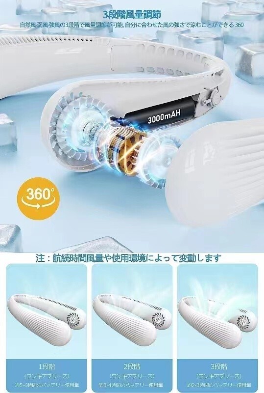 ネッククーラー 首掛け扇風機 急速冷却 大風量 携帯扇風機 ハンズフリー ネックファン 超軽量 3000mAh 3段階自由調節 角度調整 USB充電式 携帯扇風機 首掛けクーラー 持ち運びやすい ネックファン 冷却プレートファン マスク蒸れ対策 熱中症対策グッズ