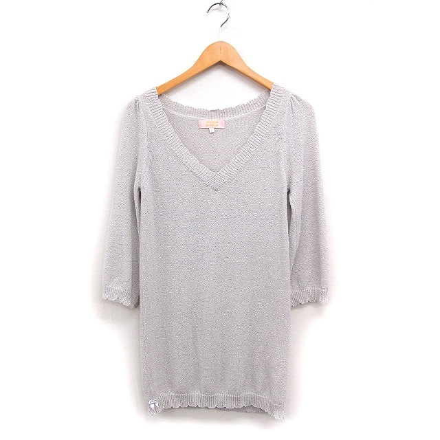 ミニマム MINIMUM ニット チュニック Vネック 七分袖 ラメ混 2 ライトグレー /FT34 レディース