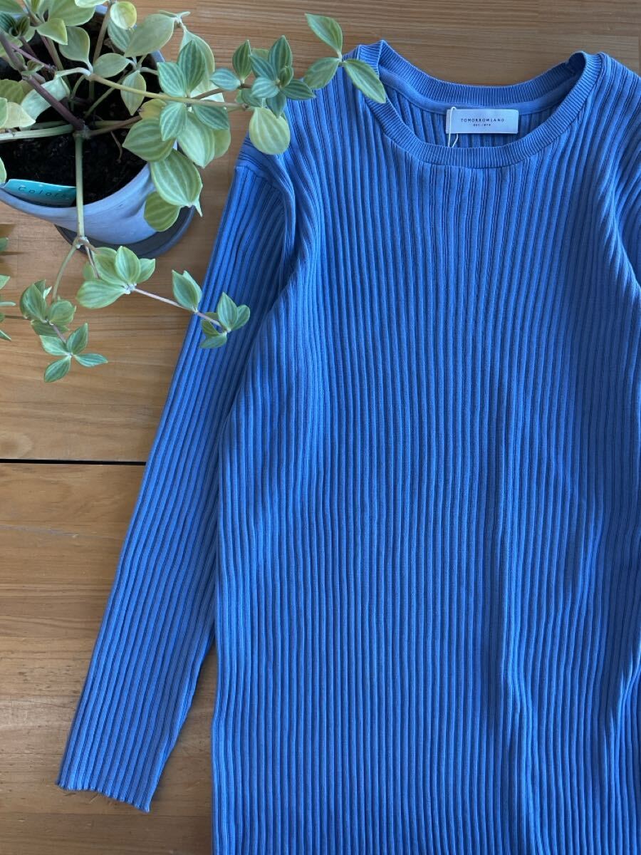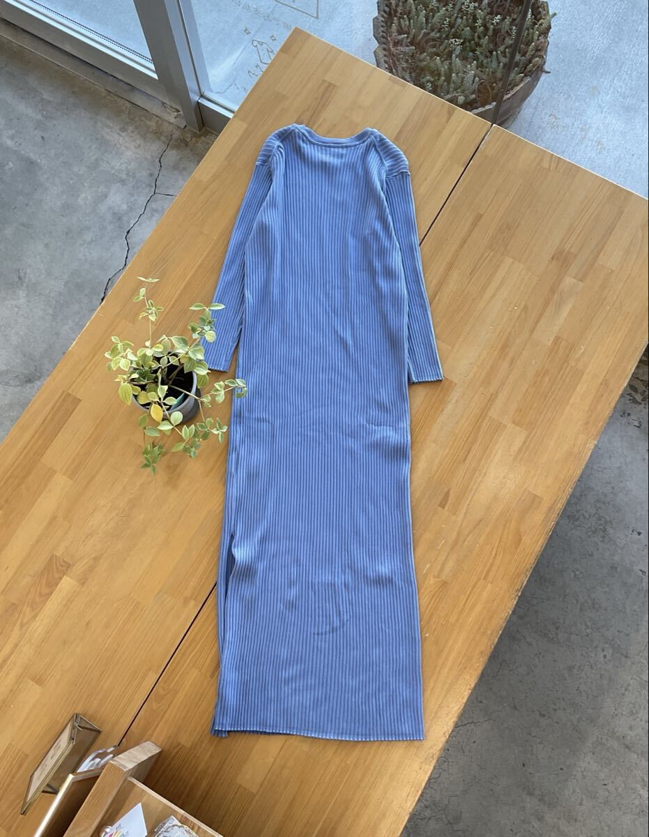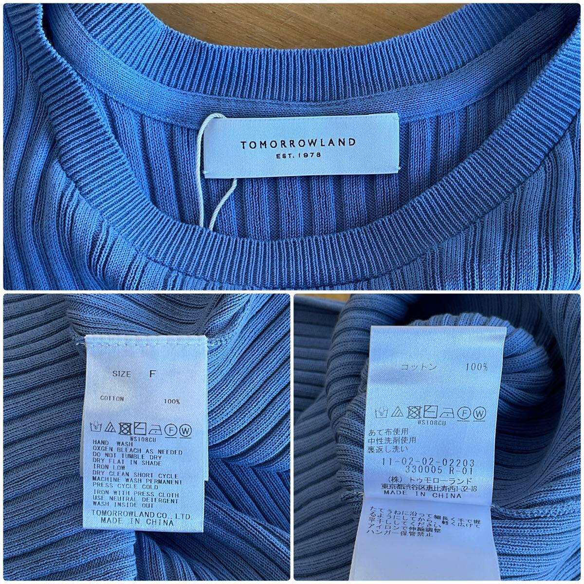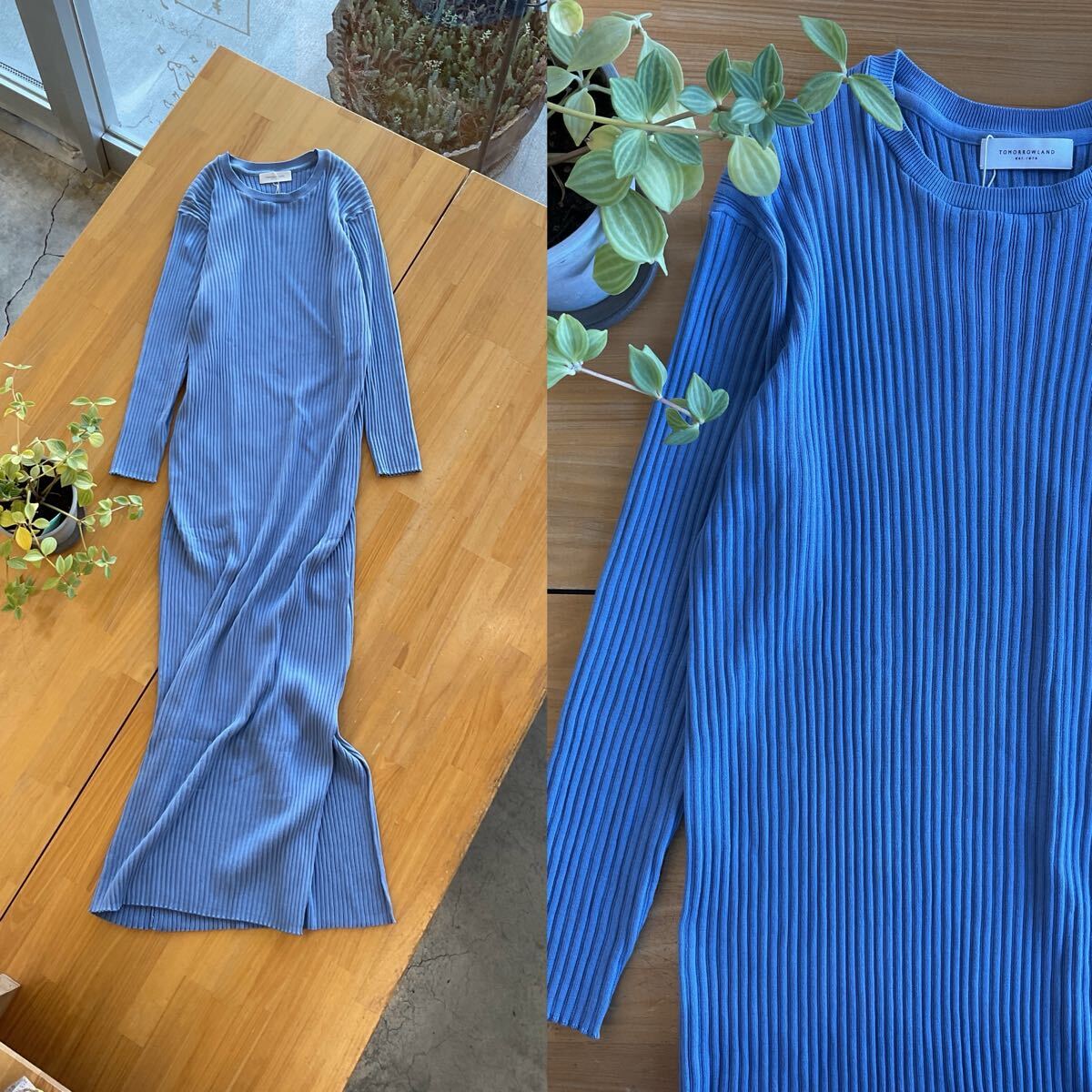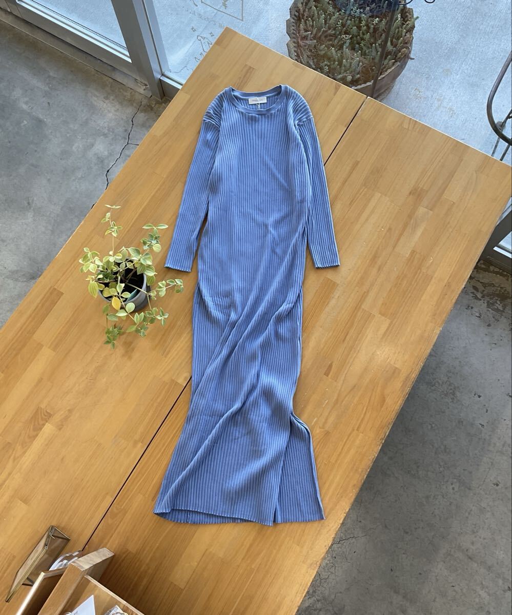 TOMORROW LAND トゥモローランドコットンリブニットサイドスリットワンピース タイトストレッチチュニックトップス ブルー青色系 フリー q