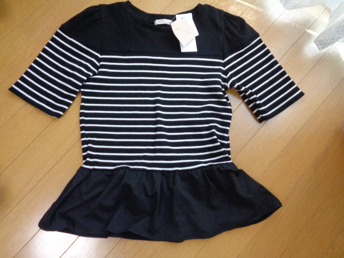 しまむら☆インフルエンサーコラボ☆ナオ☆nao☆異素材☆ペプラム☆ボーダー☆トップス☆プルオーバー☆Tシャツ☆新品☆高見え☆おしゃれ