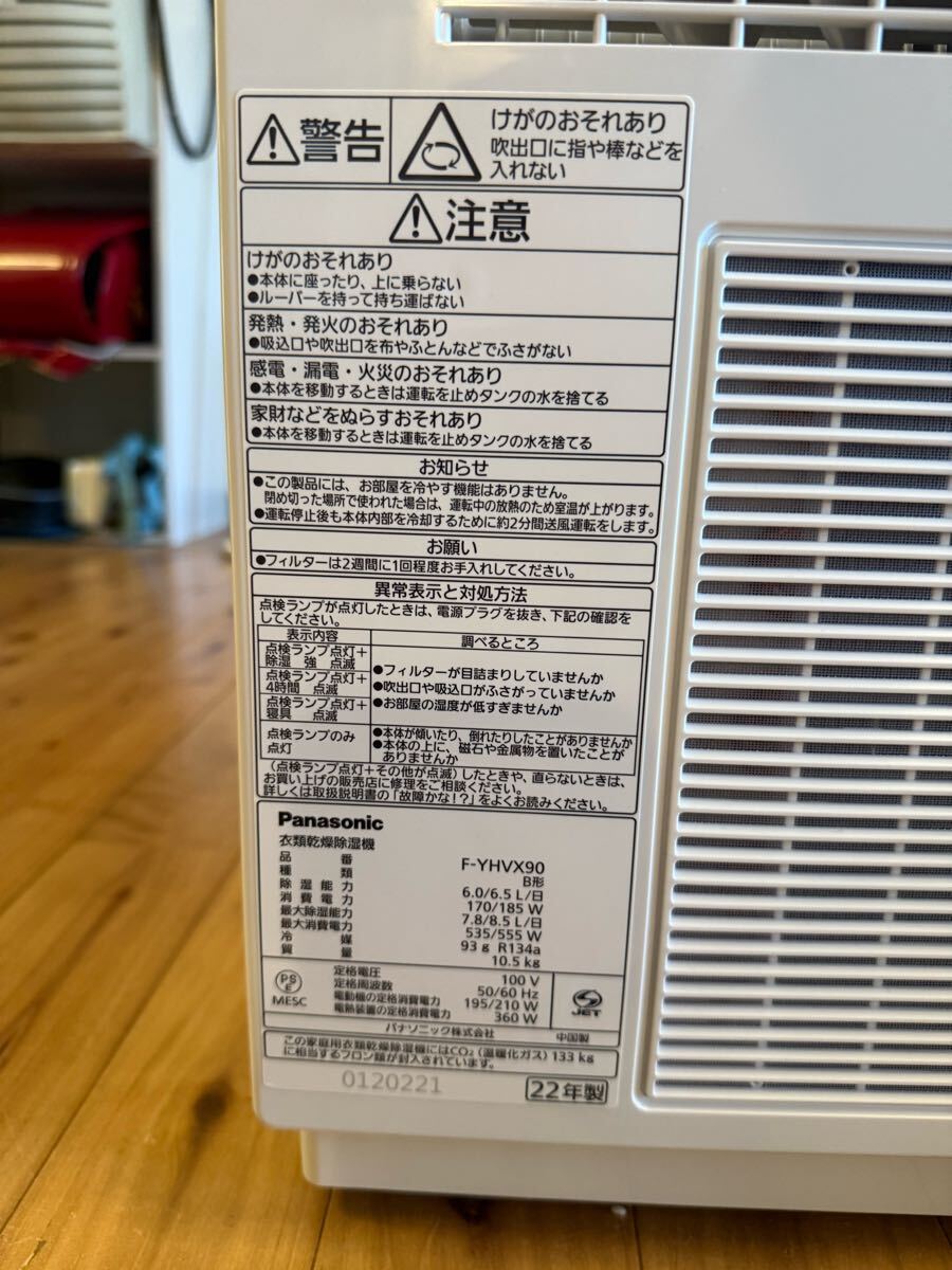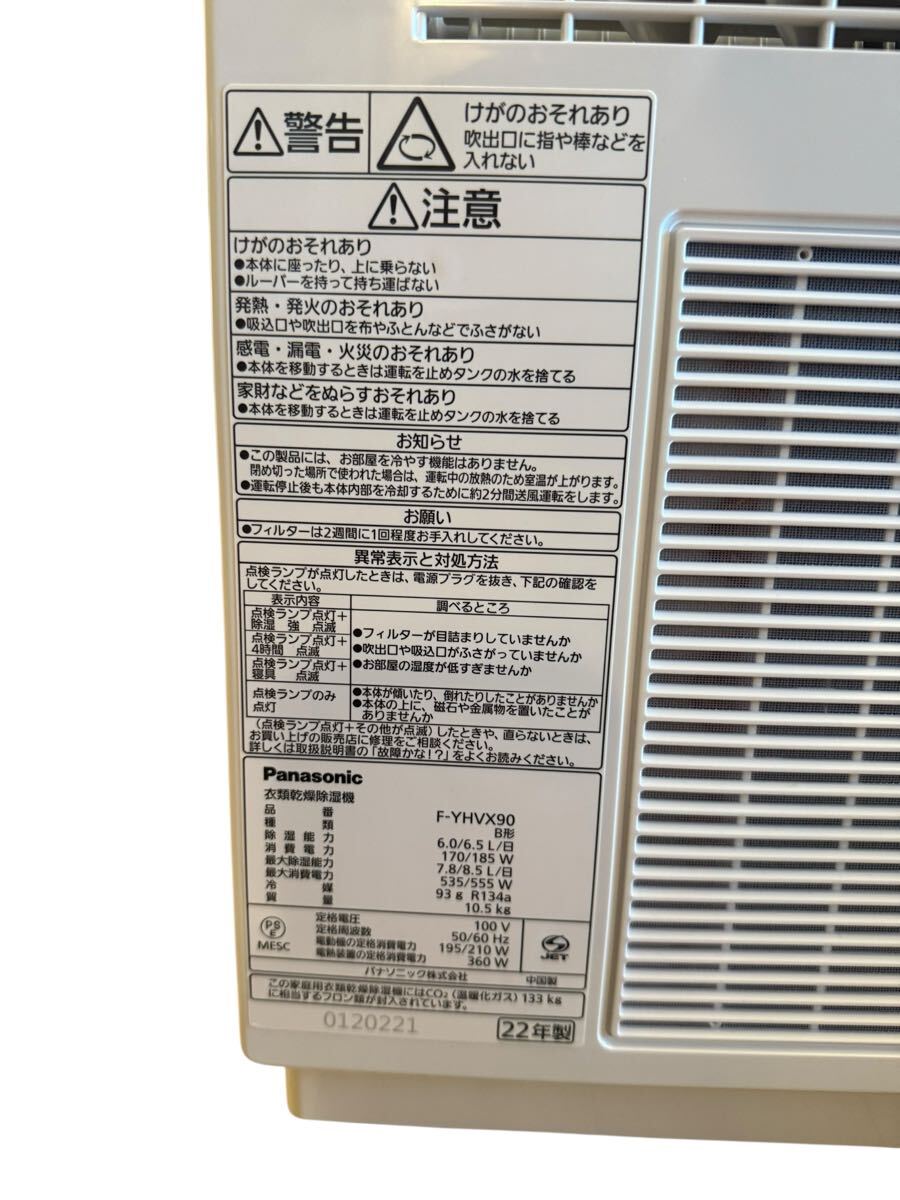 【美品】ナノイー パナソニック F-YHVX90-W 衣類除湿乾燥機 22年製