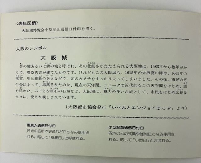| 商品説明 | ご覧頂きまして、誠にありがとうございます。 ■☆切手コレクター必見☆【 風景印付き 大阪城博覧会 切手スタンプ帳 】 ■消印、大阪東郵便局 昭和58年10月16日 ■経年品です、多少のシミ汚れあります。 ※詳しい内容は写真を参照ください。 ■USED品、保管品、経年品。ご理解、ご了承の上ご入札ください。 ■段ボール箱や紙袋(もしくはビニール袋)にて簡易包装で発送致します。 ■開封の際は製品の破損に十分ご注意ください。 ◆状態 ・あくまでも中古品のため、傷、埃や汚れの付着、状態の変化などがある場合がございます。 ・経年によるヨレ、ヤケ、シワがある場合がございます。 ・あくまでも個人保管品ですので予めご了承ください。 ※詳細は写真にてご確認ください。 商品番号:K-10601-1 No.303 |