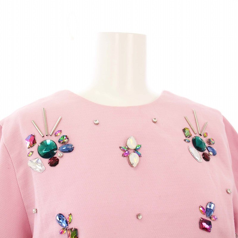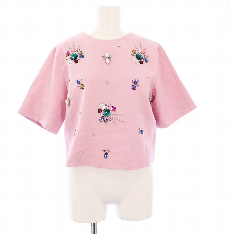 スリーフロア THREE FLOOR カットソー 半袖 ビジュー XS ボンボンピンク /KH ■GY41 レディース