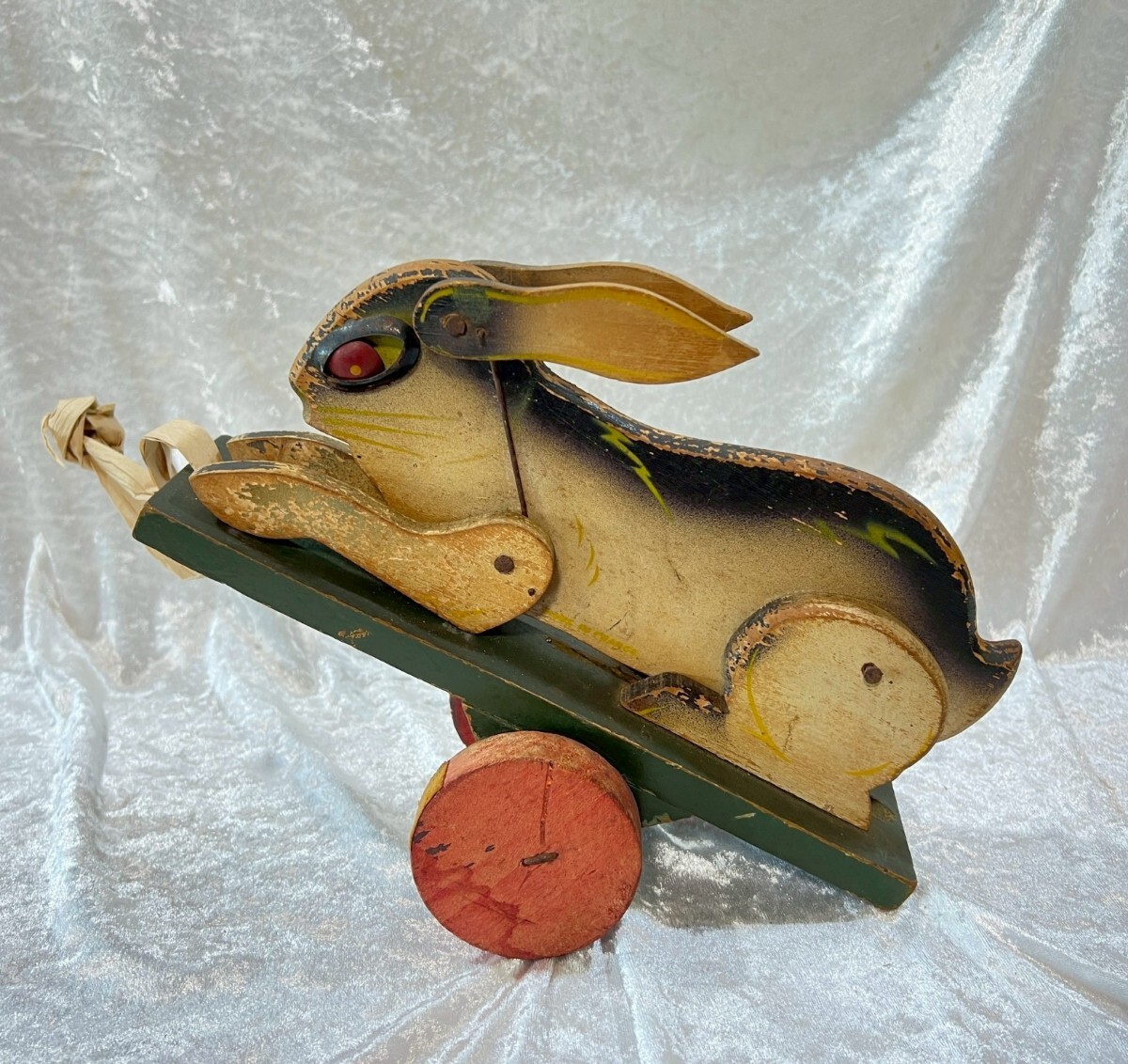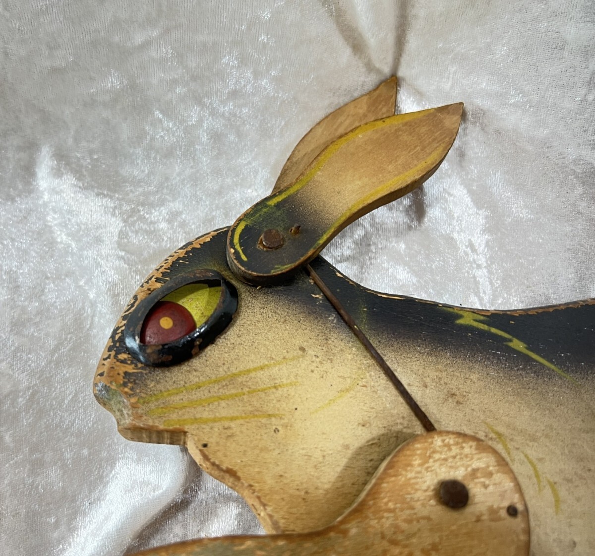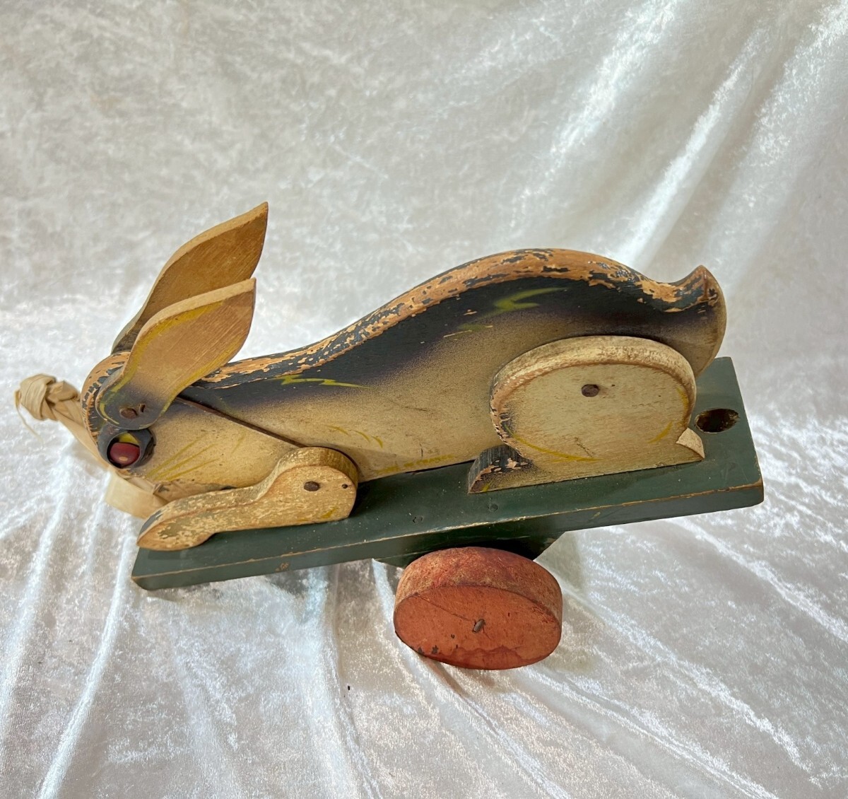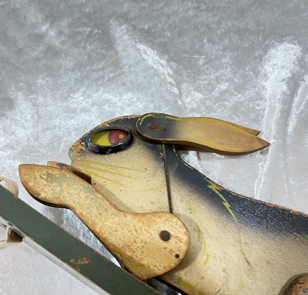 【雑貨・玩具】うさぎの引き車 木製 カタカタ 昭和レトロ 古民具 おもちゃ ディスプレイ用品 インテリア用品 骨董品 アンティーク商品説明+++ 商品名:うさぎの引き車