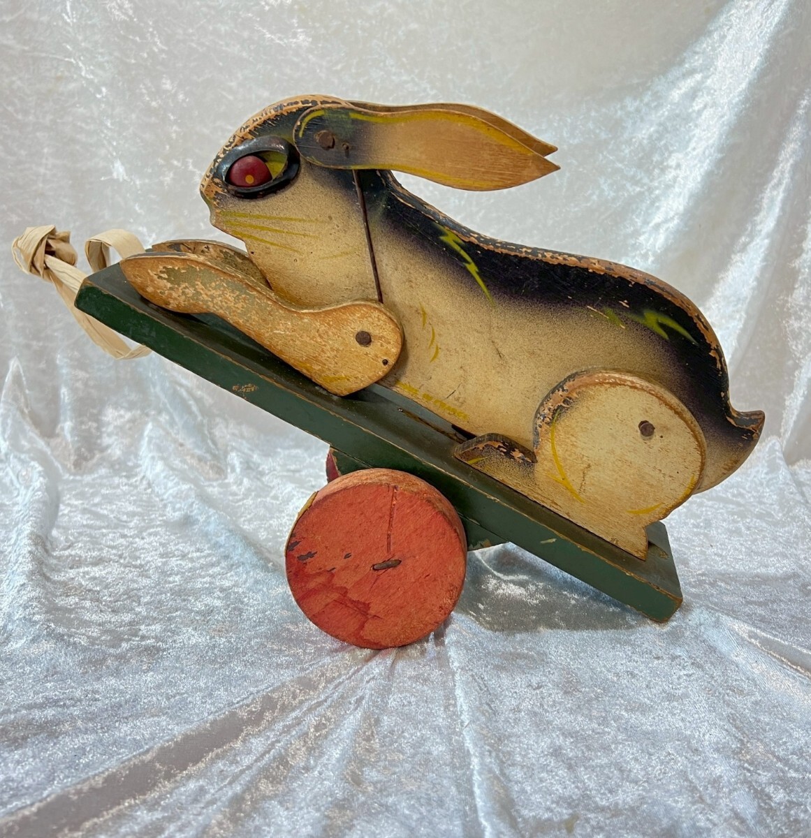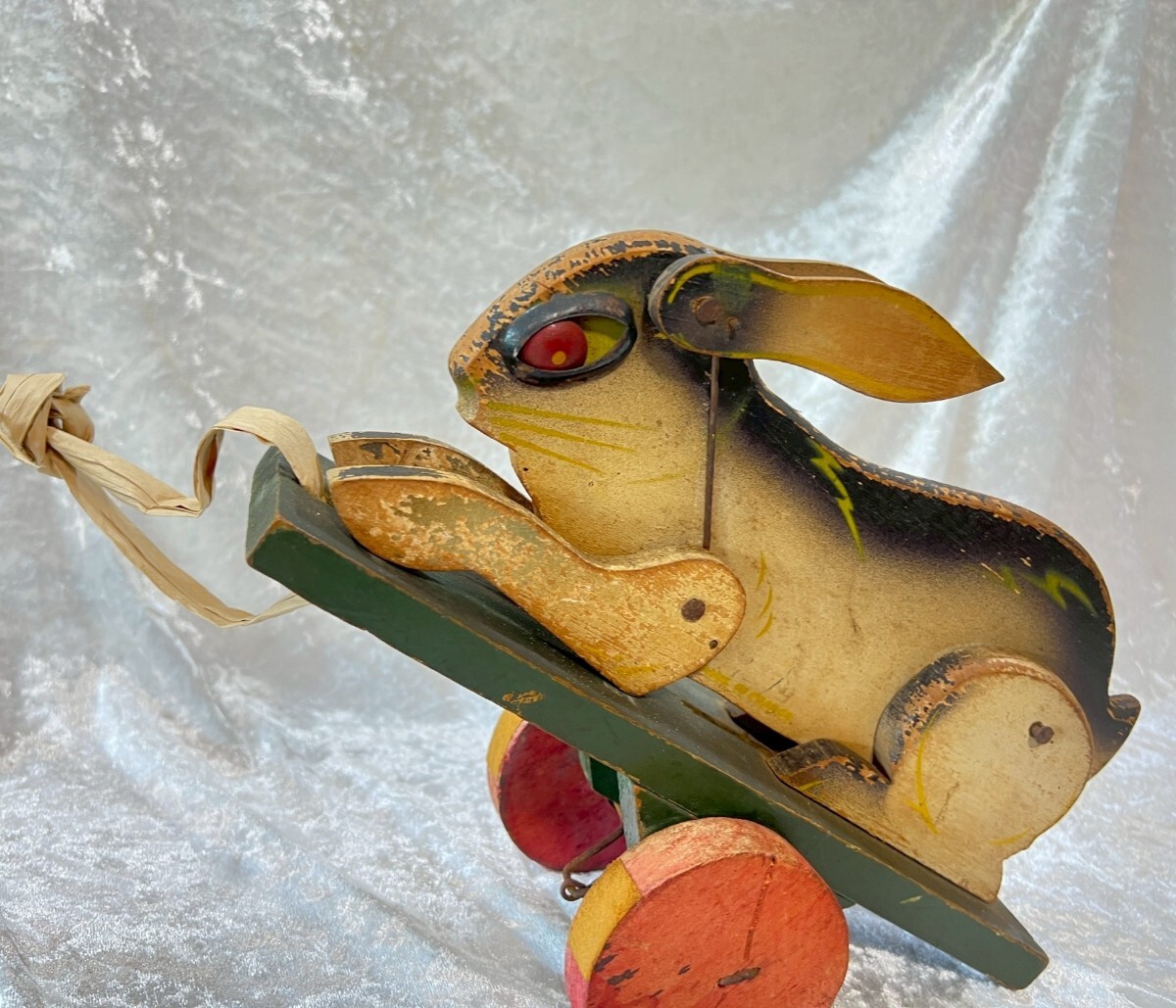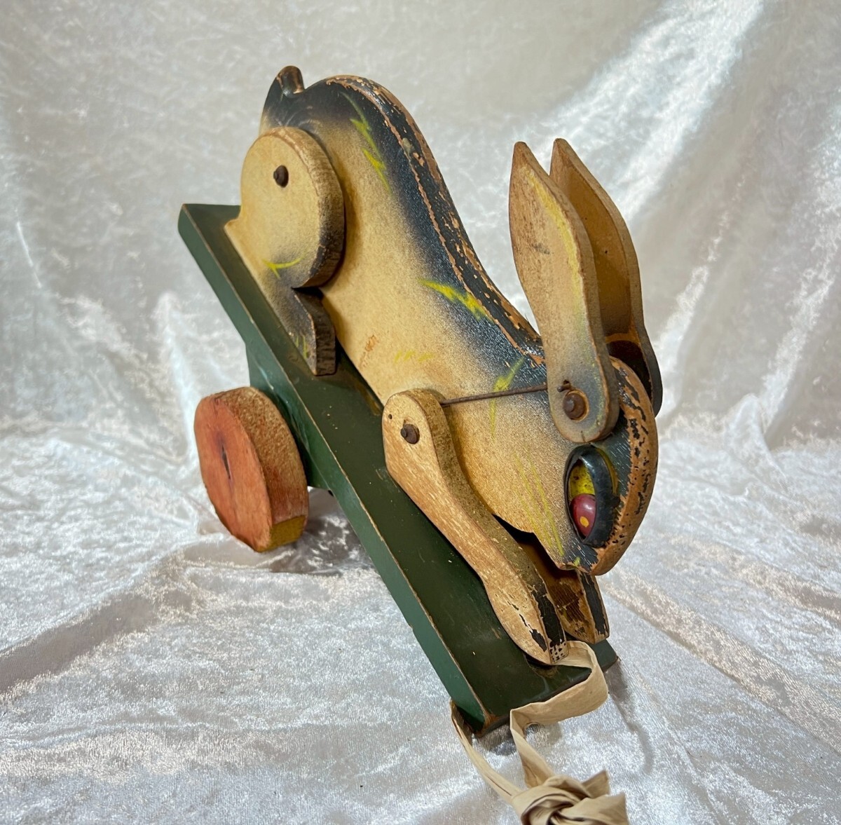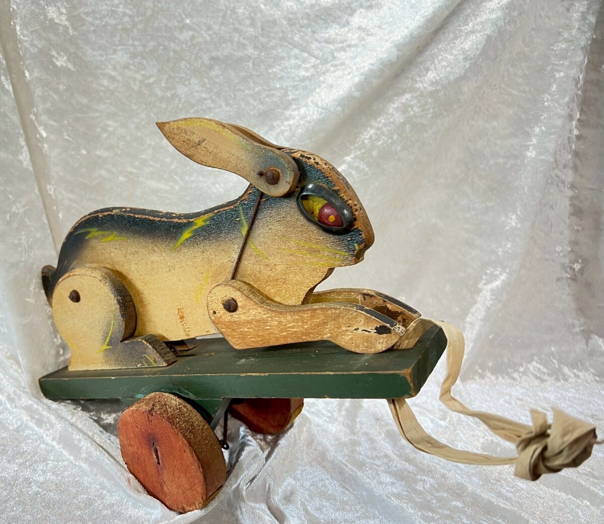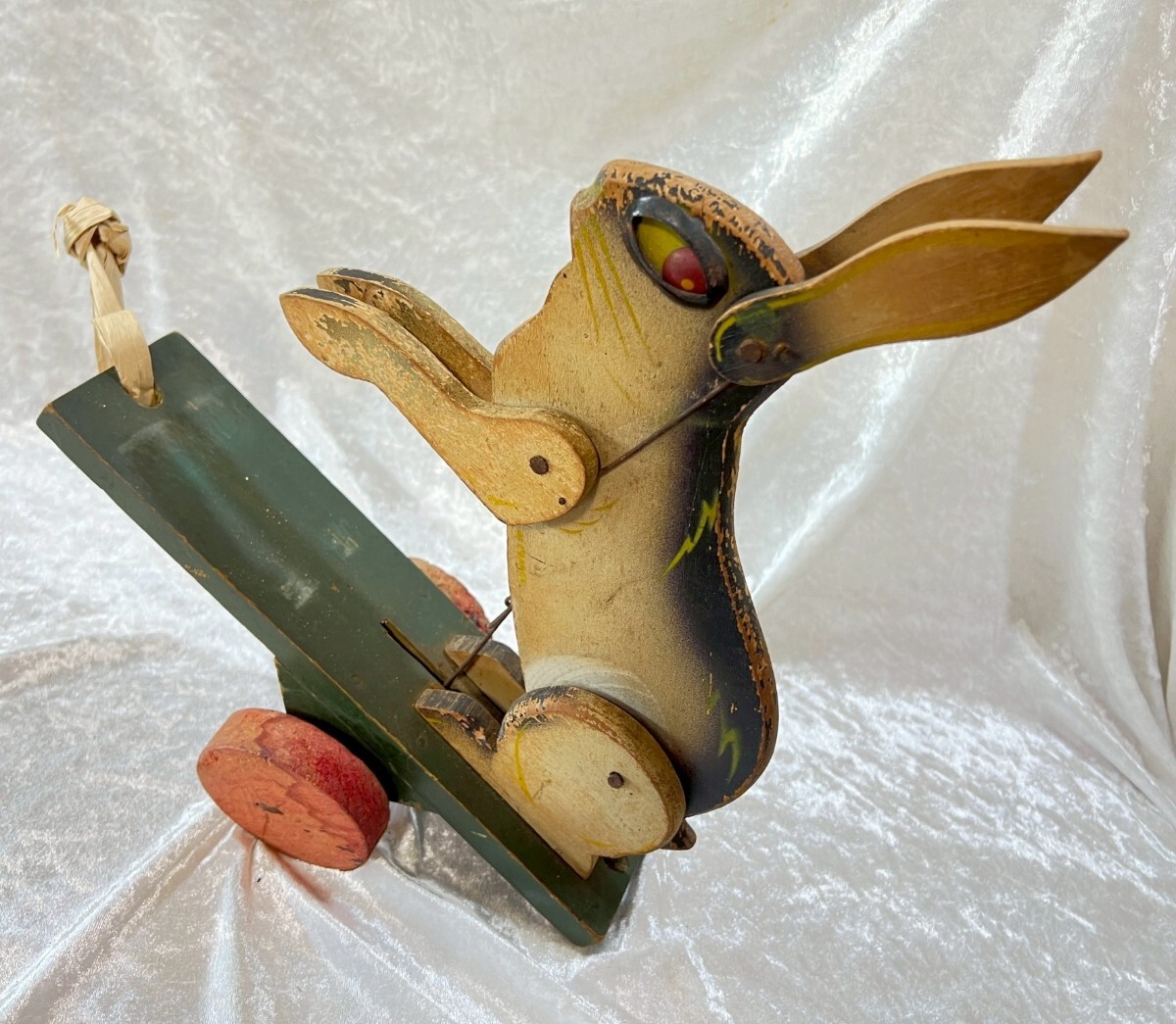 【雑貨・玩具】うさぎの引き車 木製 カタカタ 昭和レトロ 古民具 おもちゃ ディスプレイ用品 インテリア用品 骨董品 アンティーク商品説明+++ 商品名:うさぎの引き車