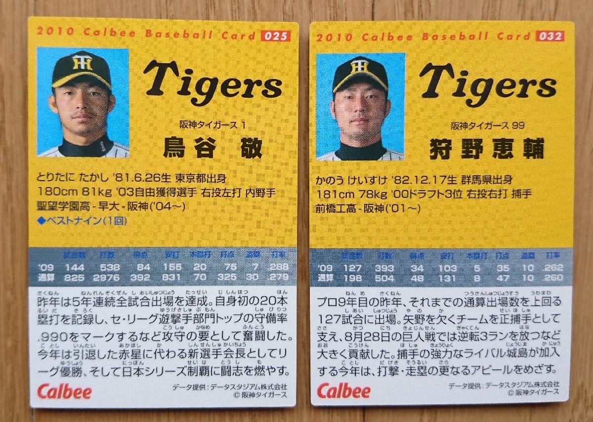 【カード・カルビー2010年】鳥谷敬 025 / 狩野恵輔 032 計2枚セット 阪神タイガース カルビープロ野球チップス