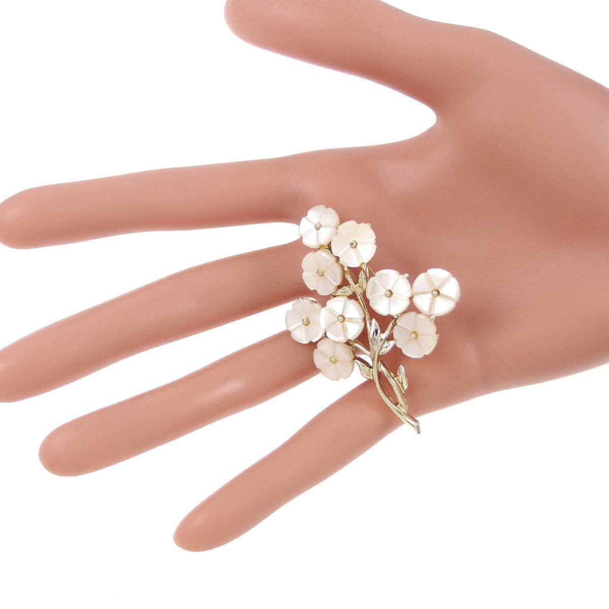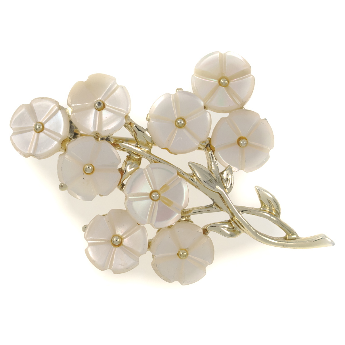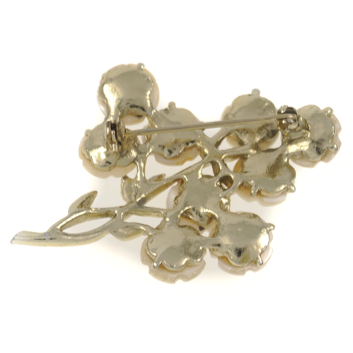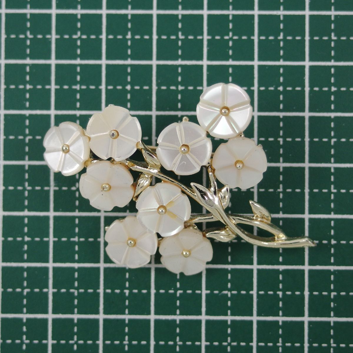 UK3923◆ フラワーモチーフ パール風ホワイト系ストーン 色石 イギリス 英国 ◆ ヴィンテージブローチ ◆
