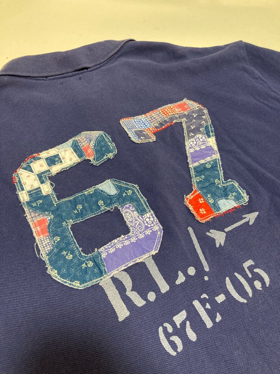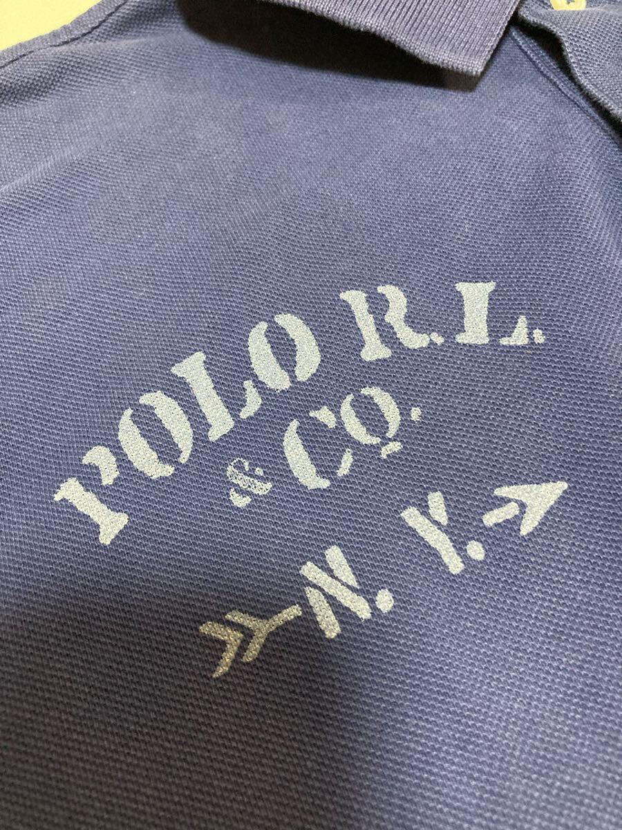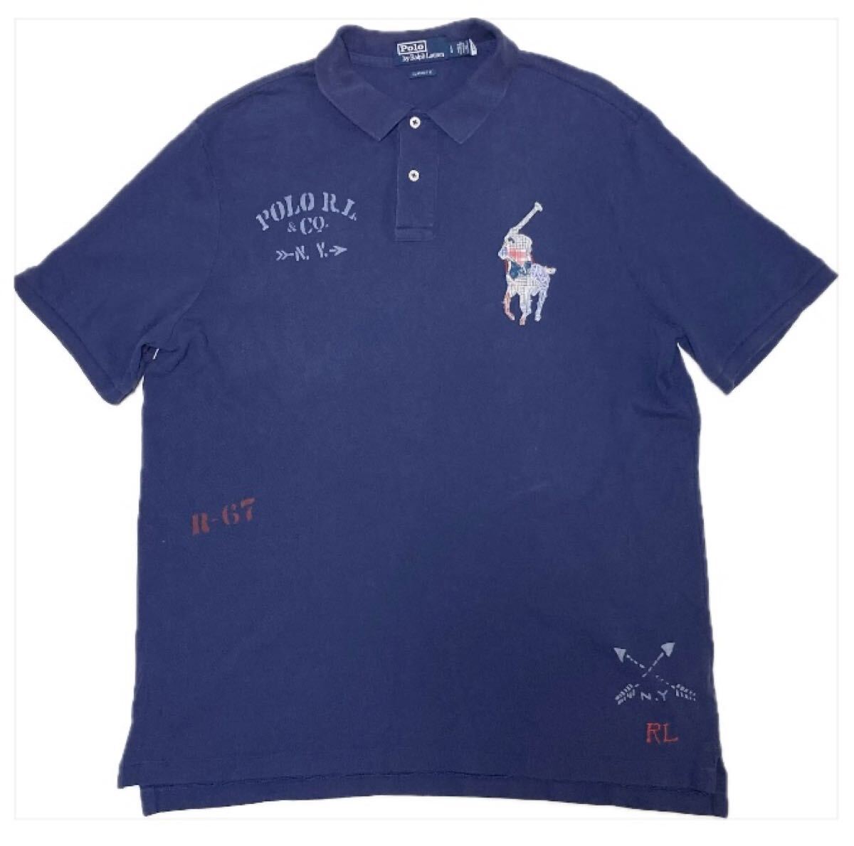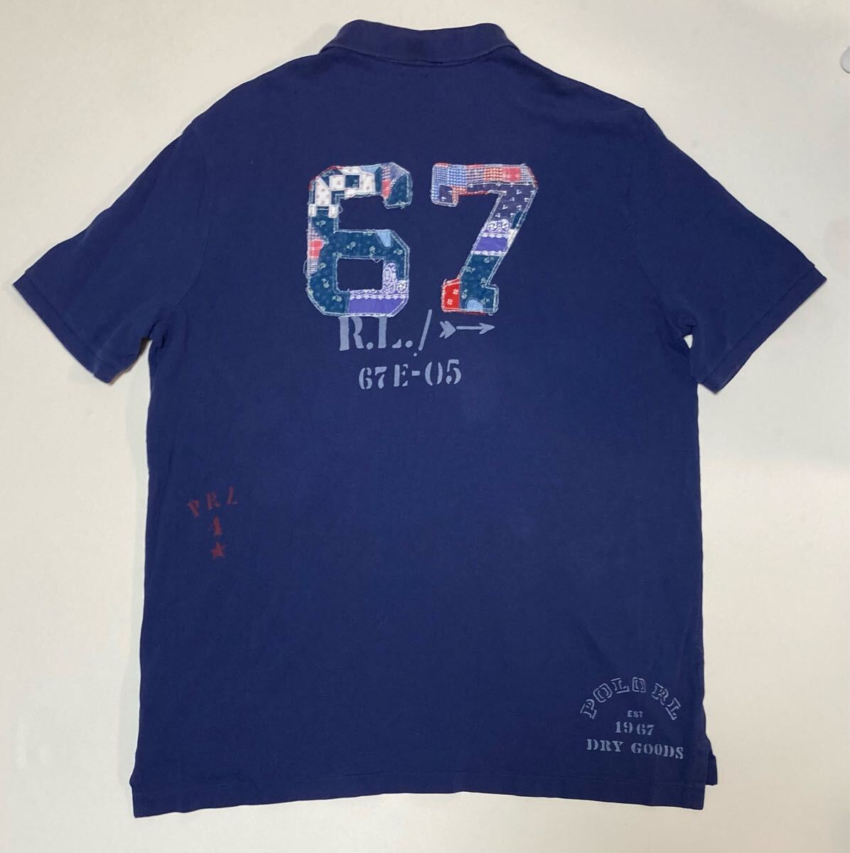 現行 QRタグ ポロラルフローレン ポロシャツ ネイビー フェード クラシックフィット ビッグポニー パッチワーク 67ロゴ ビッグサイズ