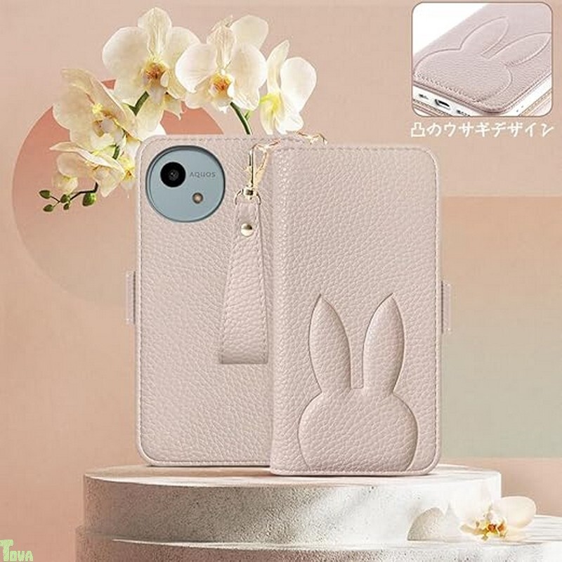 アプリコット 手帳型 うさぎ 高品質 PUレザー アクオス ウィッシュ Aquos wish5 保護 財布型 スタンド機能 カード収納 ケース カバー