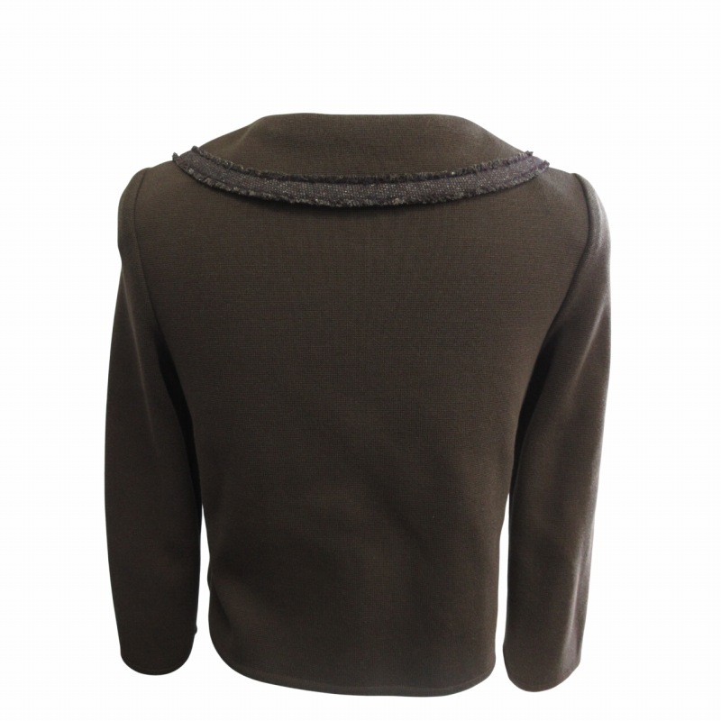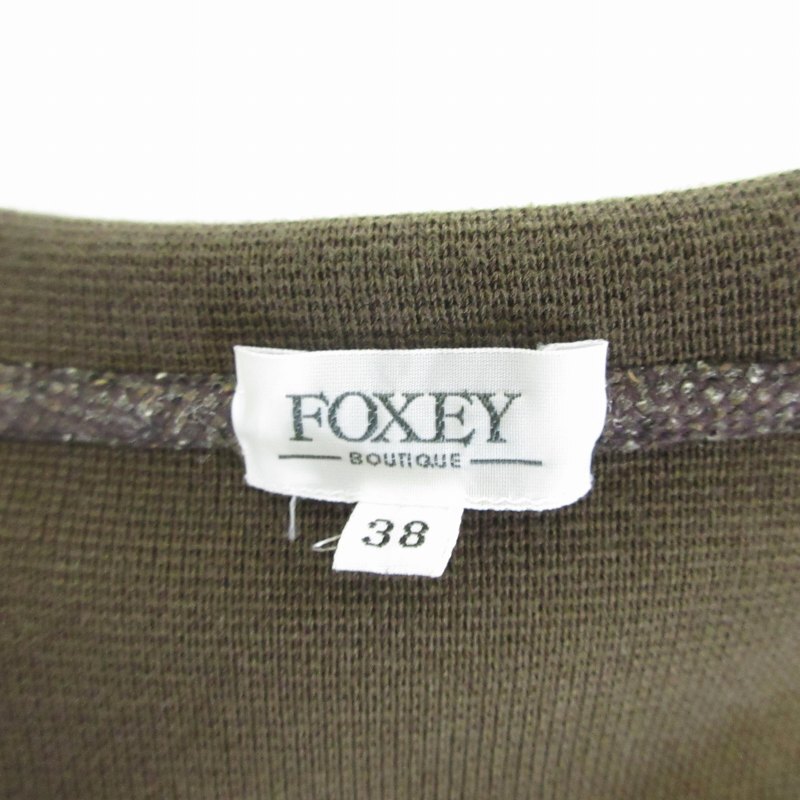 フォクシー ブティック FOXEY BOUTIQUE 美品 ニットジャケット シルクツイード切替 カーディガン 23540 長袖 茶 ブラウン 38 約M IBO76