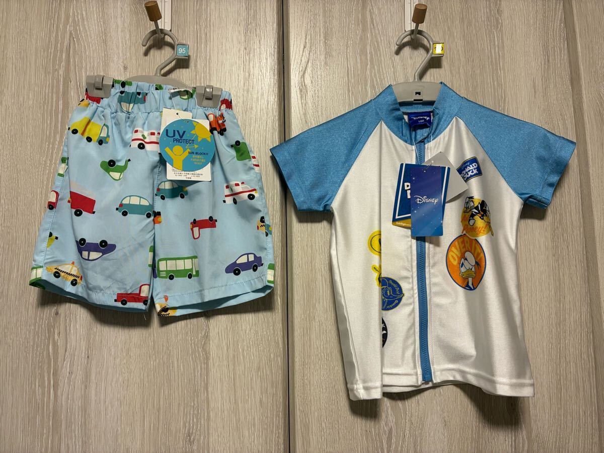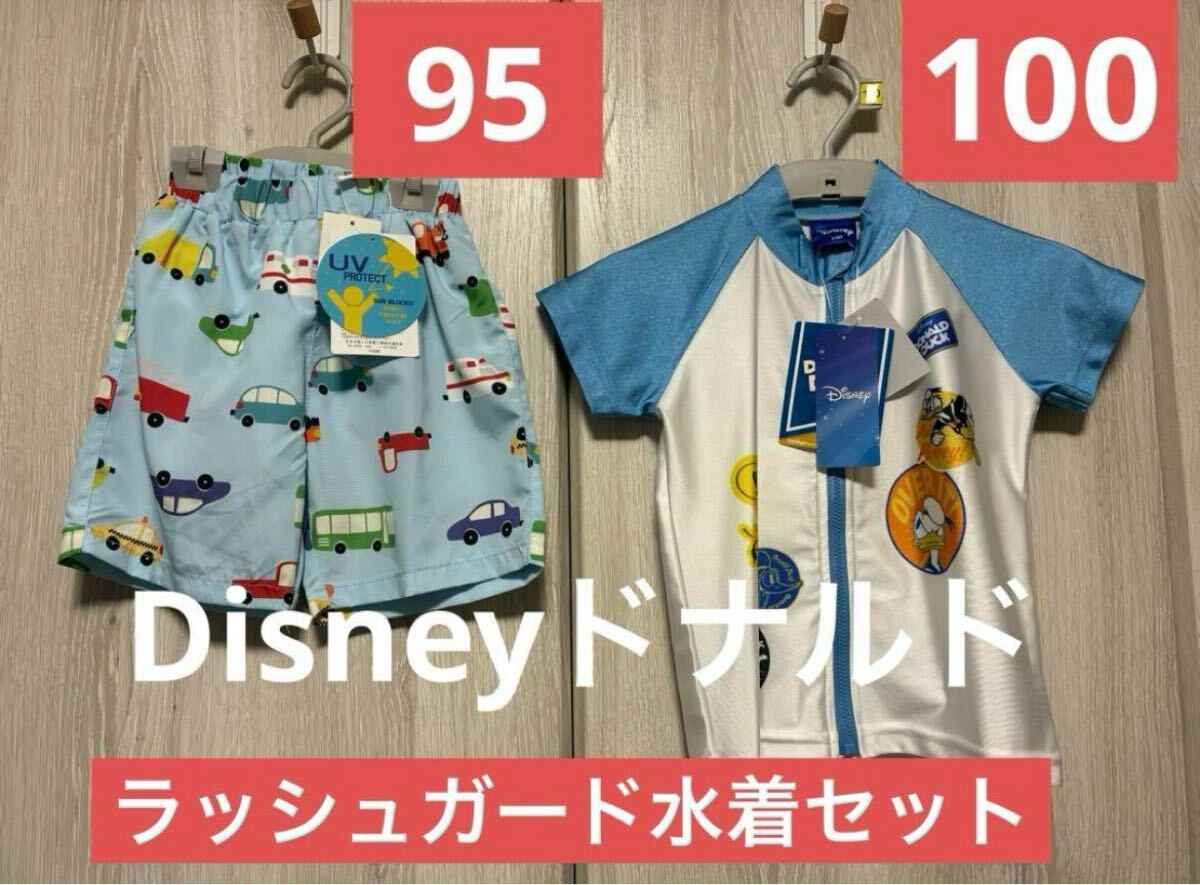 ドナルドダックのデザインが施された95cmの男の子用水着セット。