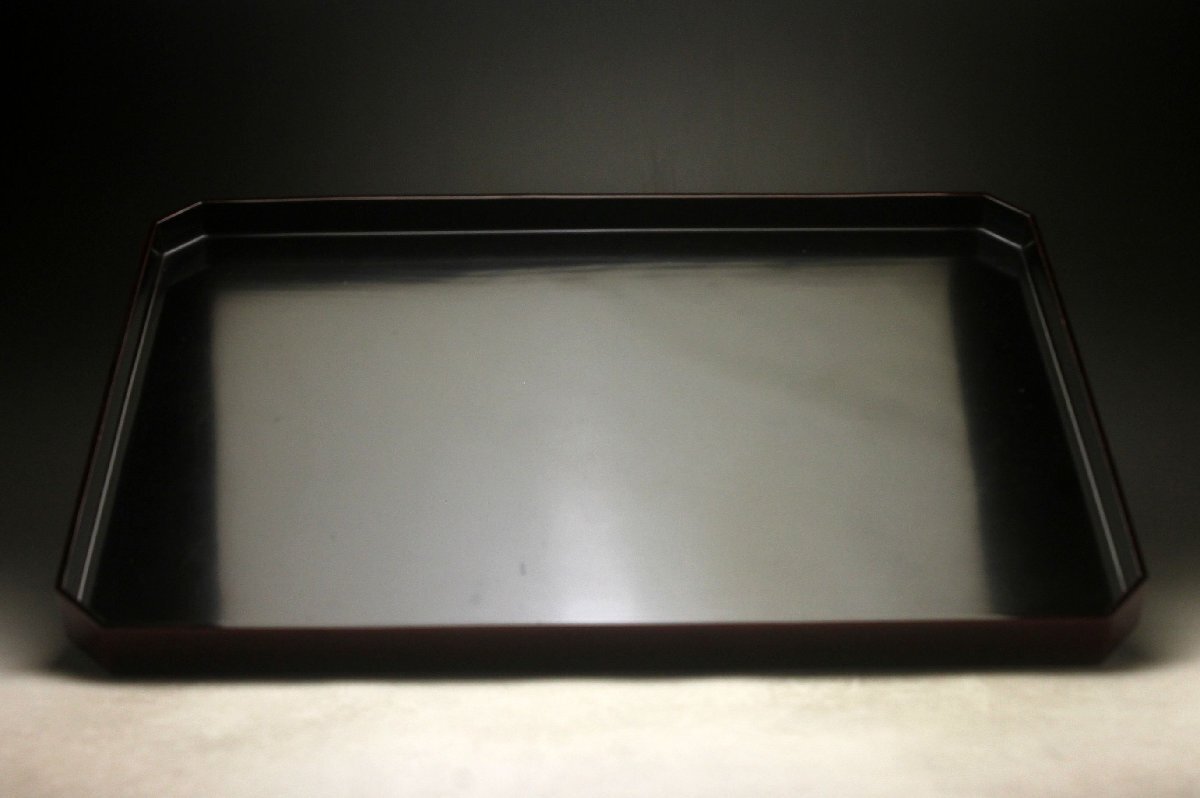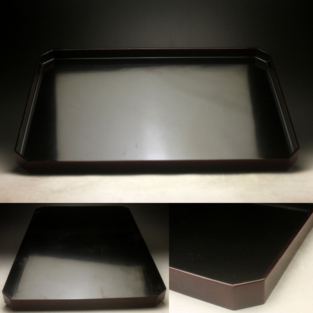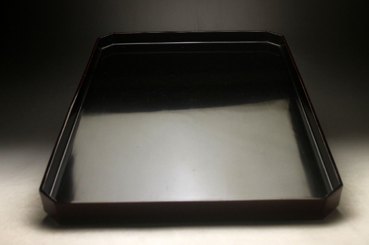 【余韻】 天然木製 漆塗 隅切盆★茶道具<同梱可>