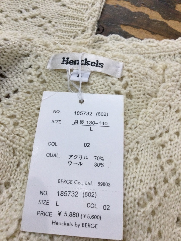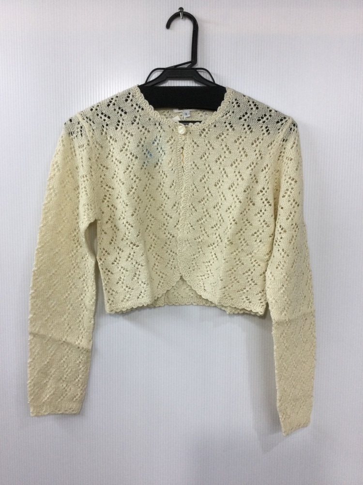 | 管理番号:43^126138 Henckels キナリホワイト 透かし編みボレロカーディガン 表示サイズ:L 実寸(参考)