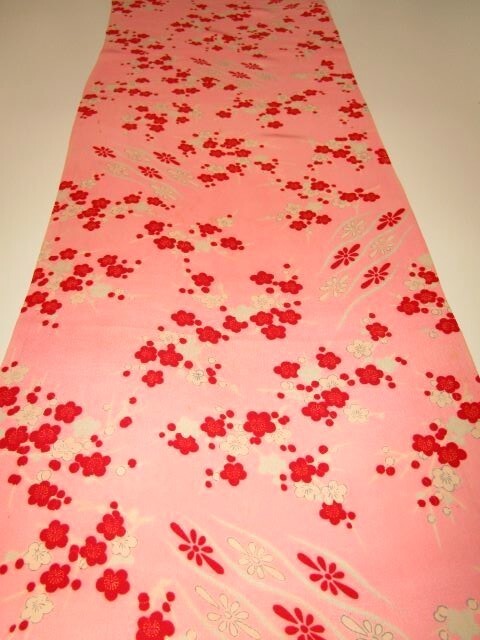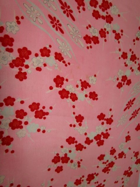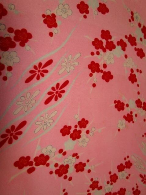 E-118★ピンク地*梅*菊*正絹*襦袢解き*古布はぎれ★文化人形/一閑張り/吊るし雛/市松人形アンティーク/ちりめん細工