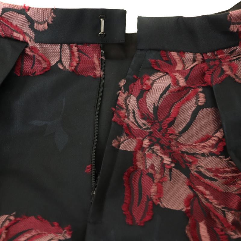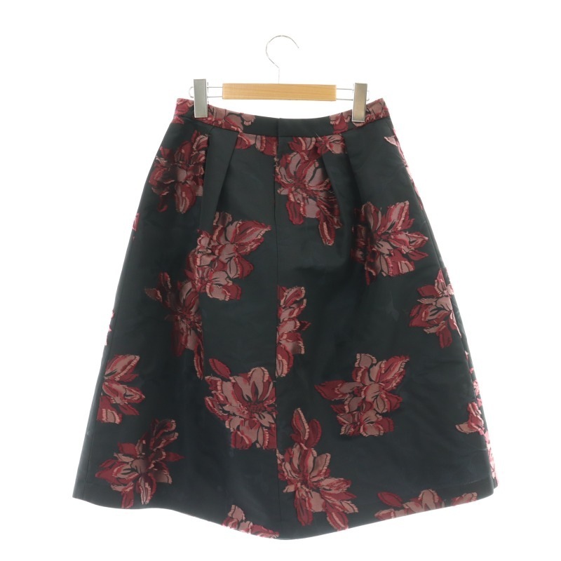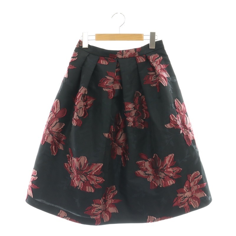 アンタイトル UNTITLED ジャガード タックフレアスカート 2 黒 ワインレッド /MI ■OS レディース