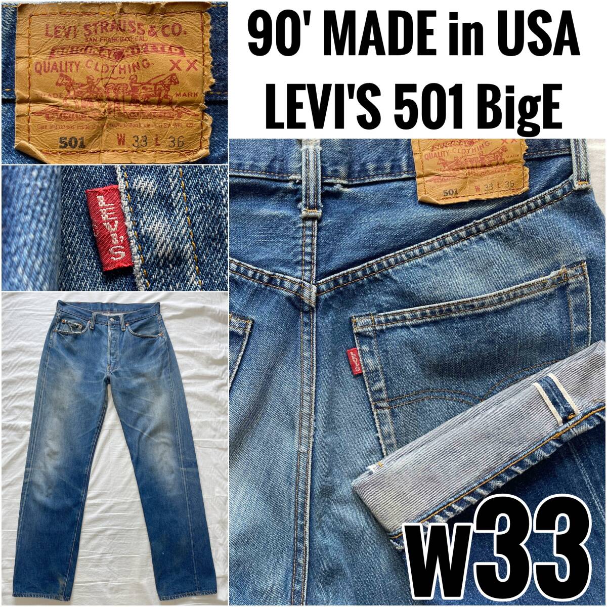 90' USA製 LEVI'S 501XX w33 BigE 110周年 バレンシア 初代復刻 アメリカ製 リーバイス 501 555 コーンミルズ赤耳デニム ビッグE 66前期