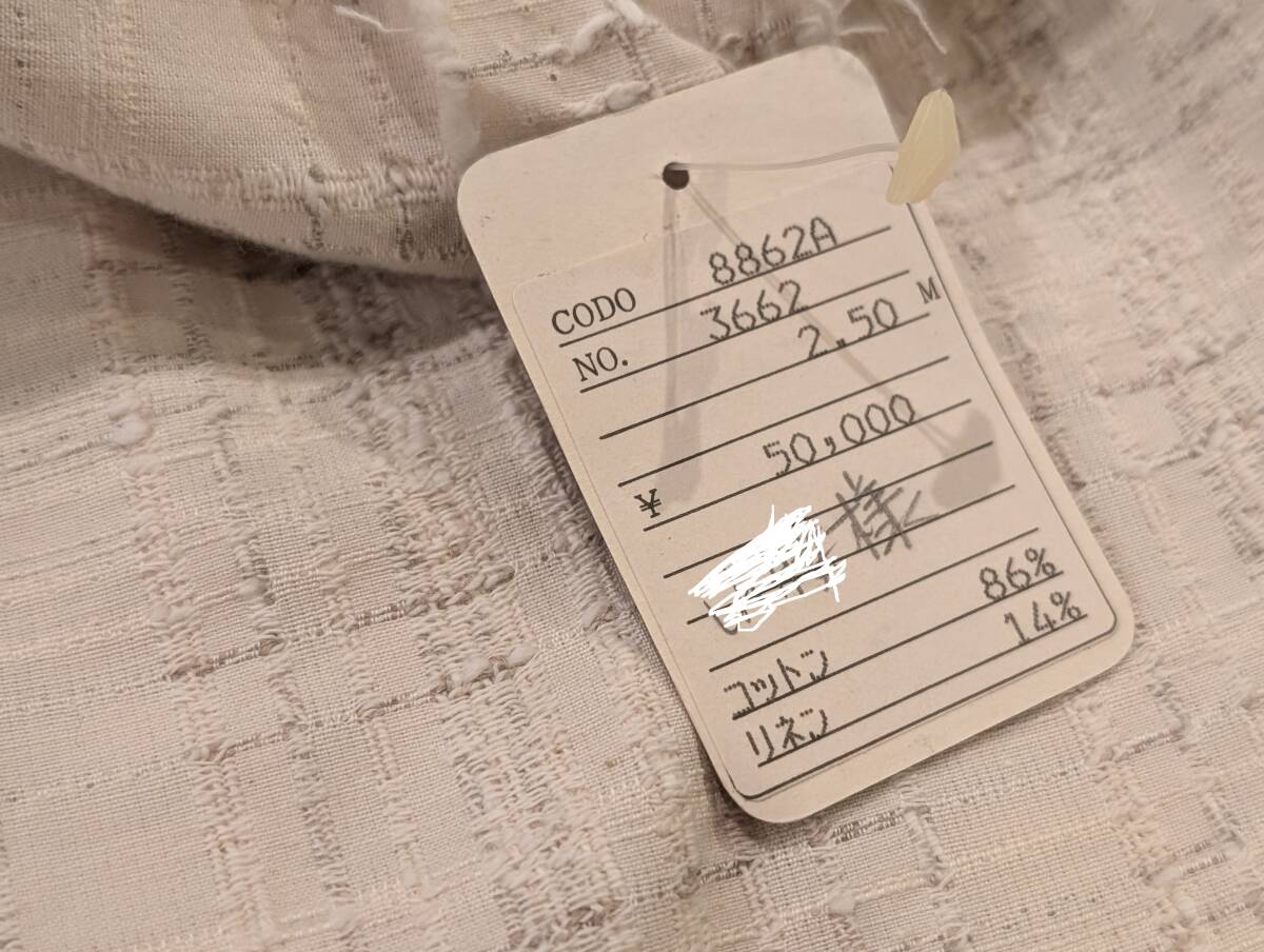 表地:コットン86%リネン14%(太めの繊維がグレンチェック状に粗く織り込まれた、モード感ある高級生地です)