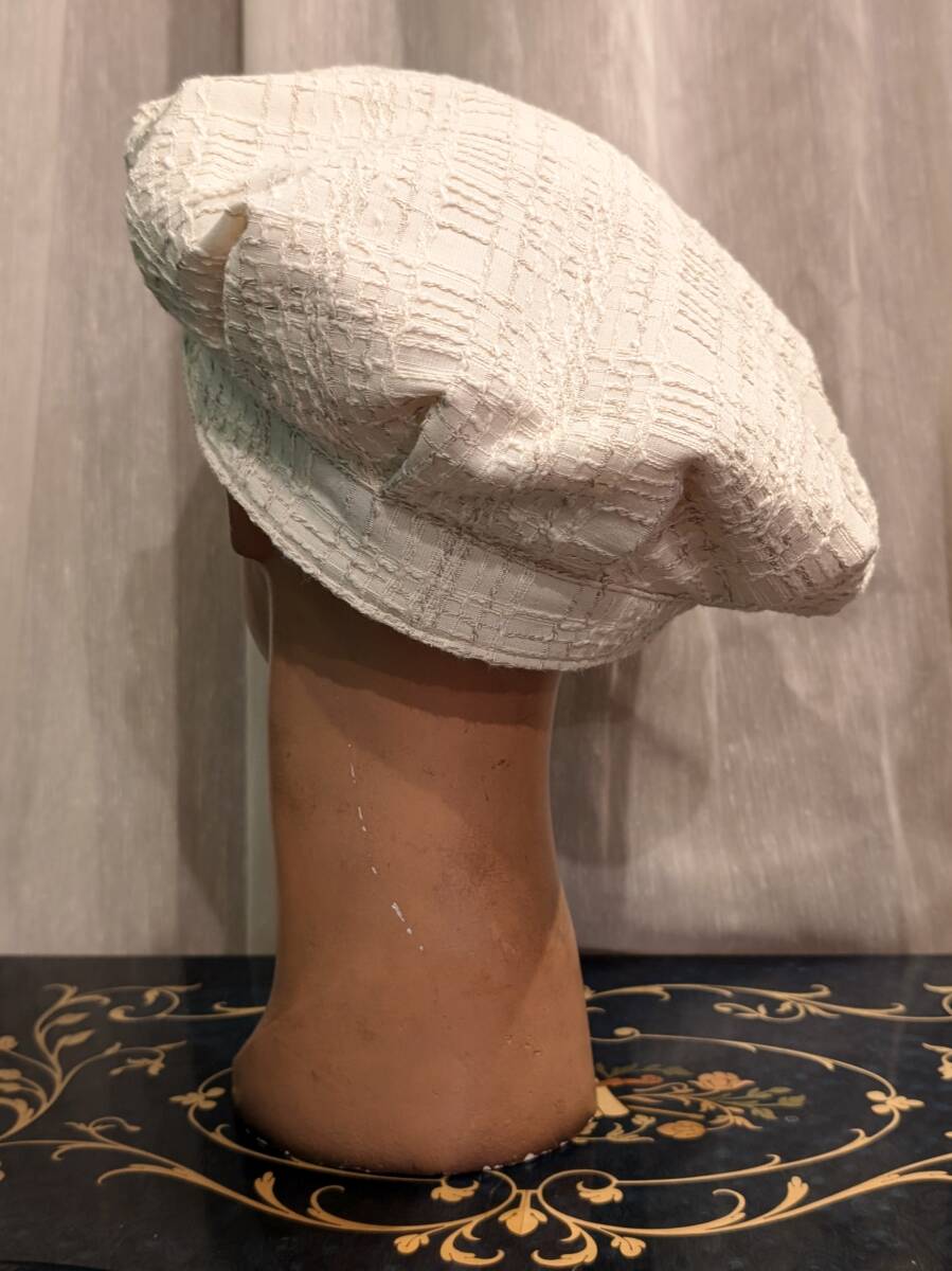 主に1910~30年代頃に流行した、一枚接ぎ仕様のキャスケットを再現しました