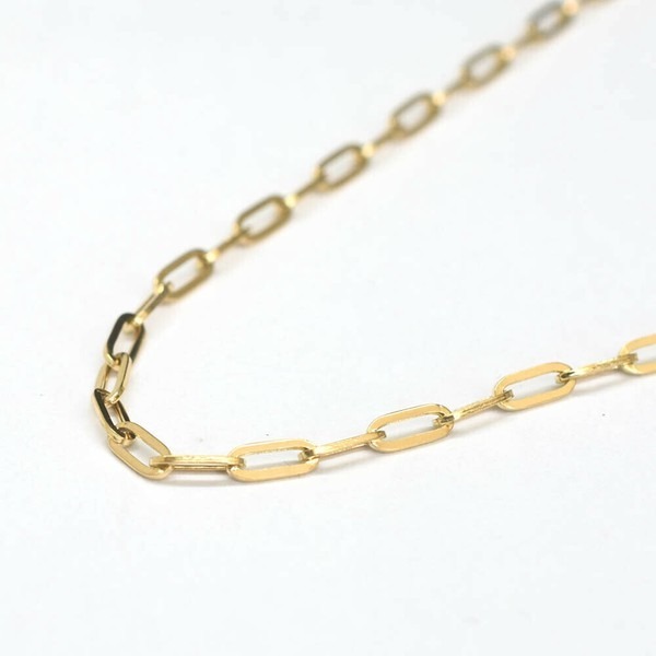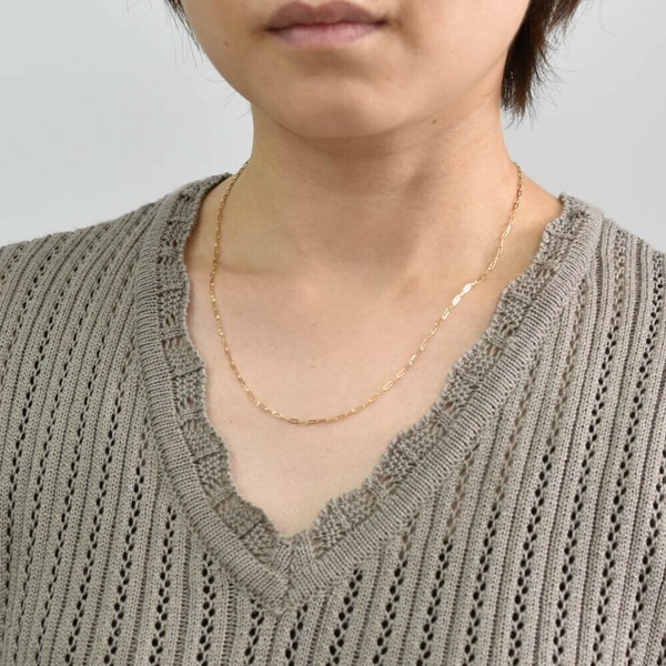 中空構造のK18ペーパークリップチェーンネックレス(50cm)は、首元にゆとりを持たせたい方におすすめ。