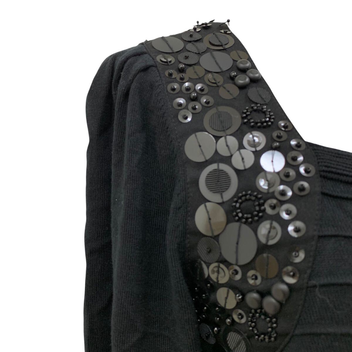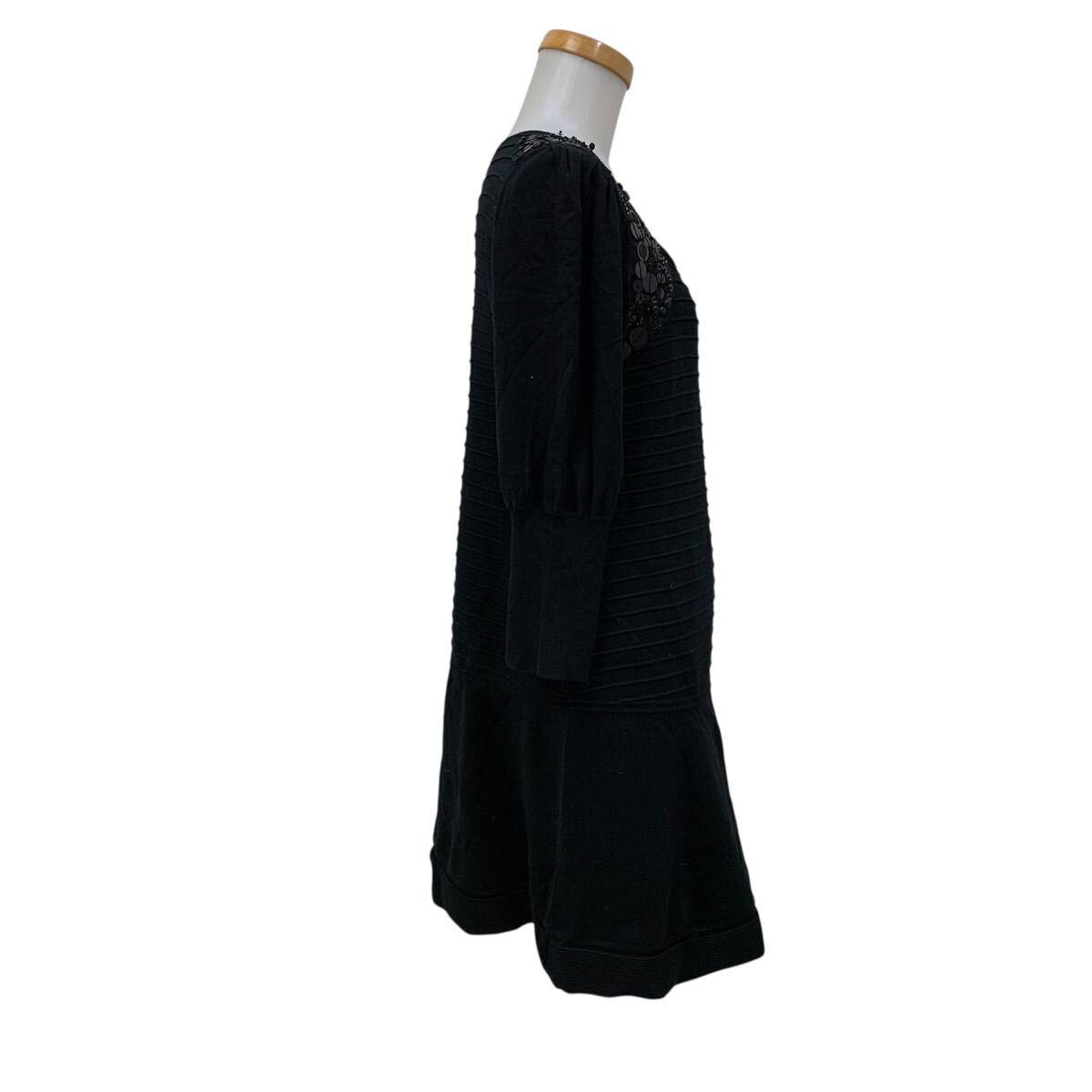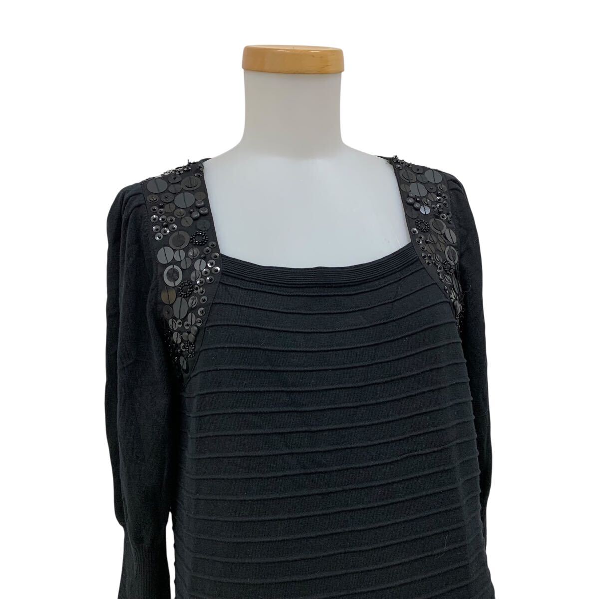 NC308-71 TO BE CHIC トゥービーシック スパンコール ビジュー シルク混 コットン ニット ワンピース ワンピ レディース 2 ブラック 黒