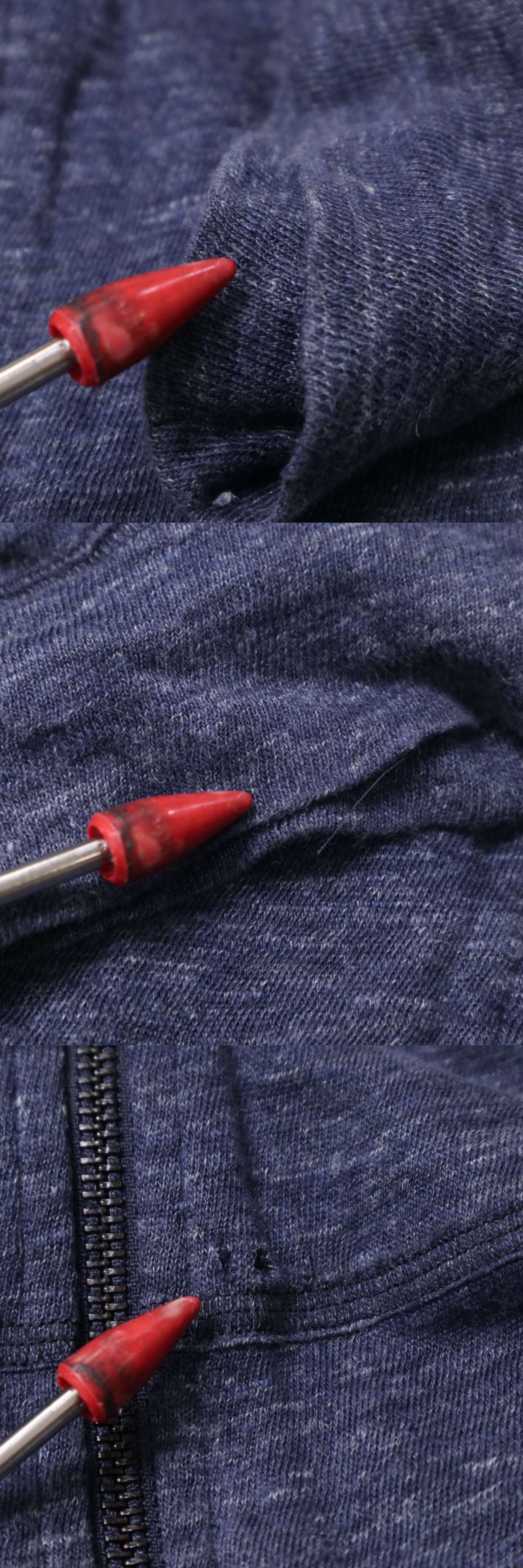 両手首が少し伸びています。お腹に小さな穴がございます。着用に問題はございません。