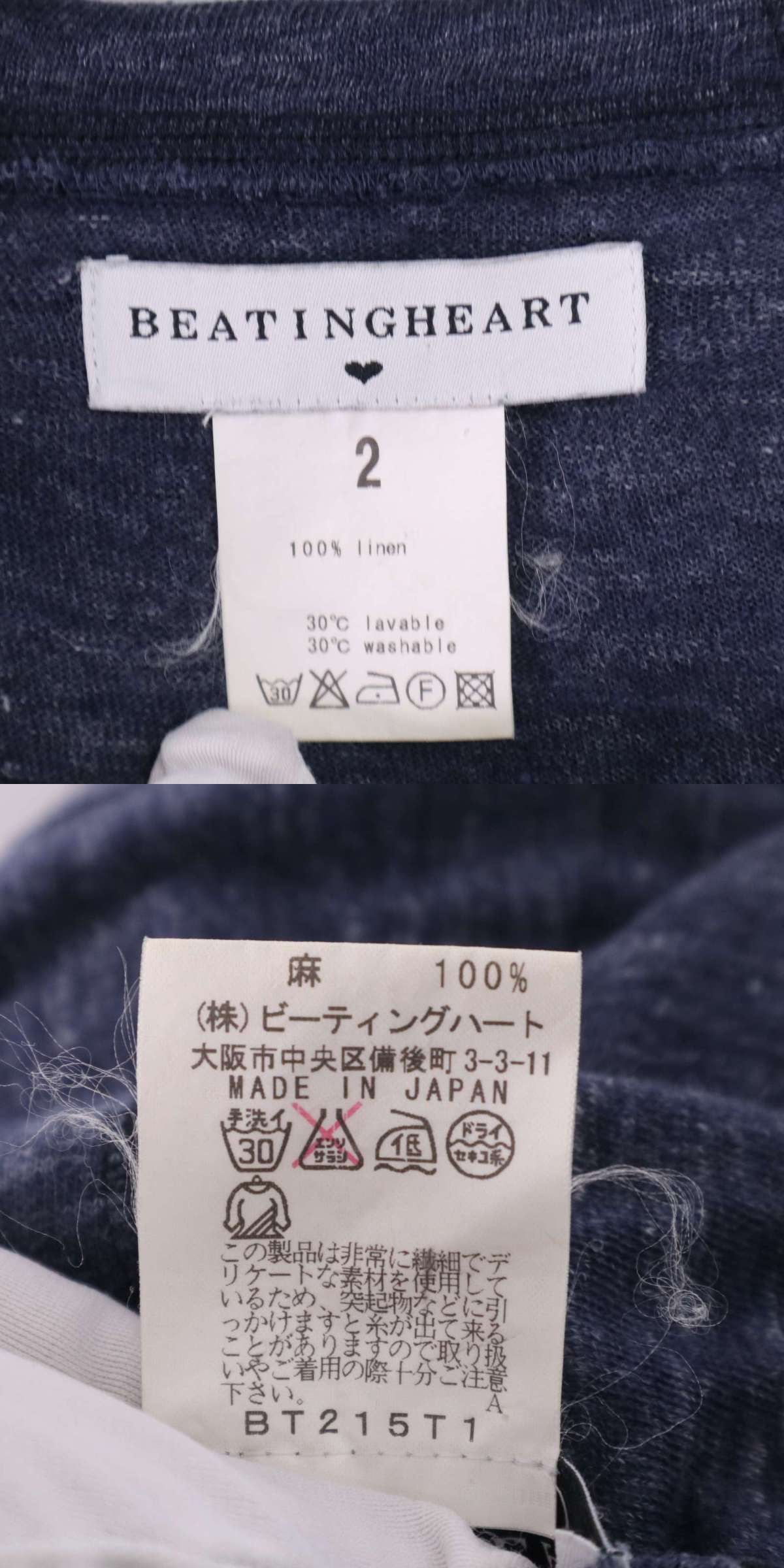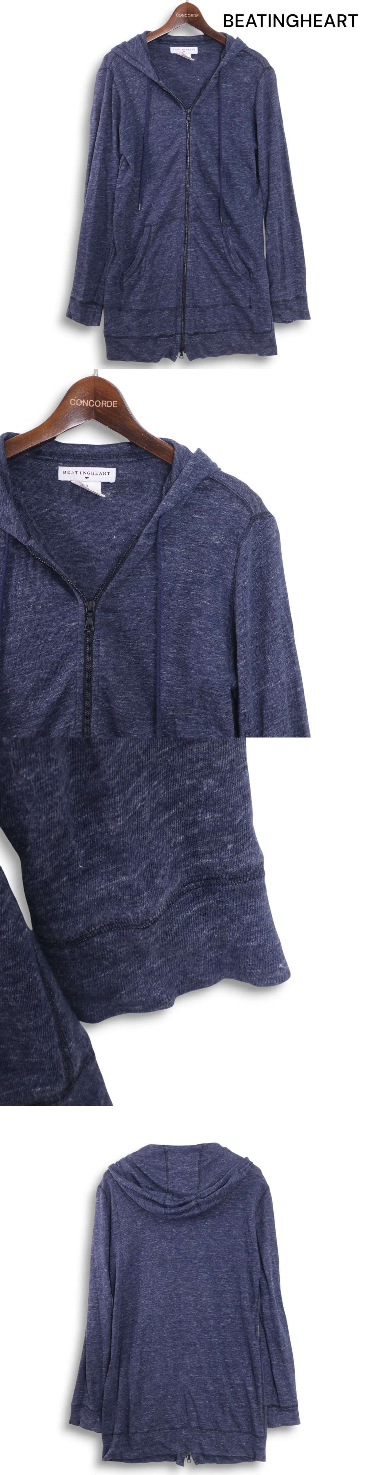 BEATINGHEART ビーティングハート 春夏★ 麻 リネン100% ジップ ロング パーカー フーディー Sz.2 レディース ネイビー
