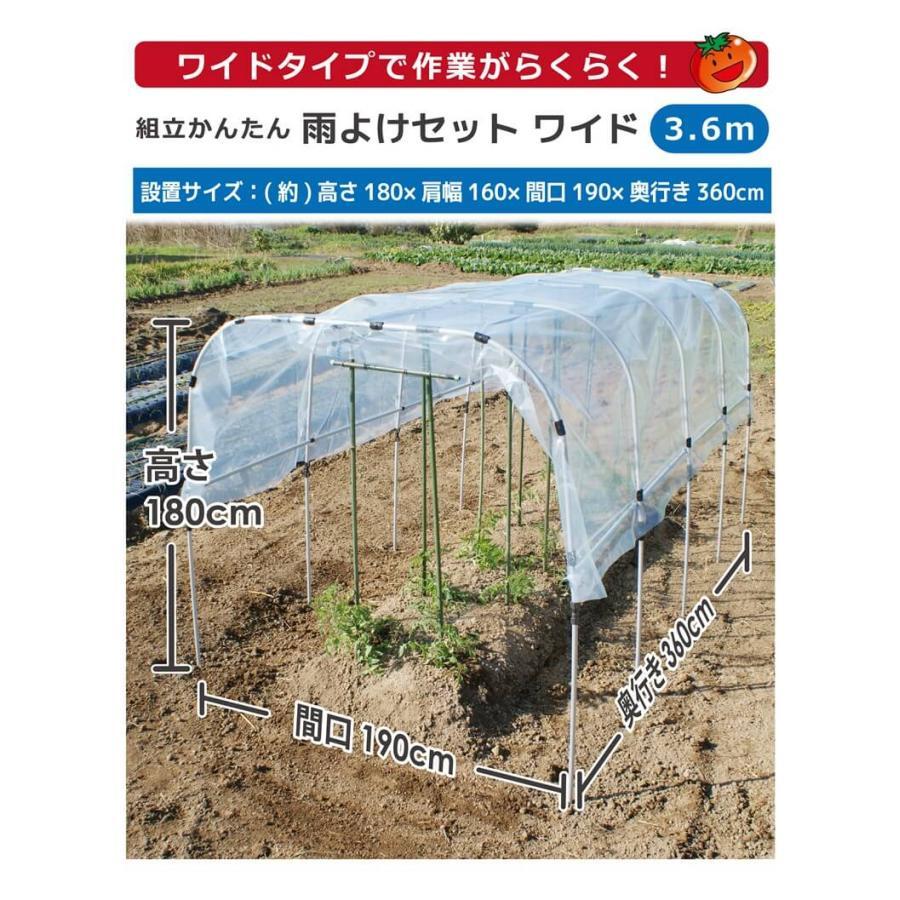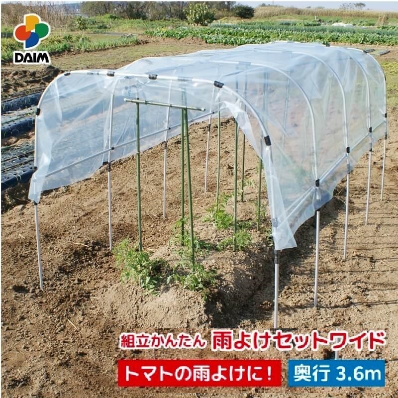 daim 組立かんたん雨よけセットワイド 奥行き 3.6m トマト ナス 野菜 小型 ビニールハウス 雨よけ 風よけ 鳥よけ 家庭菜園