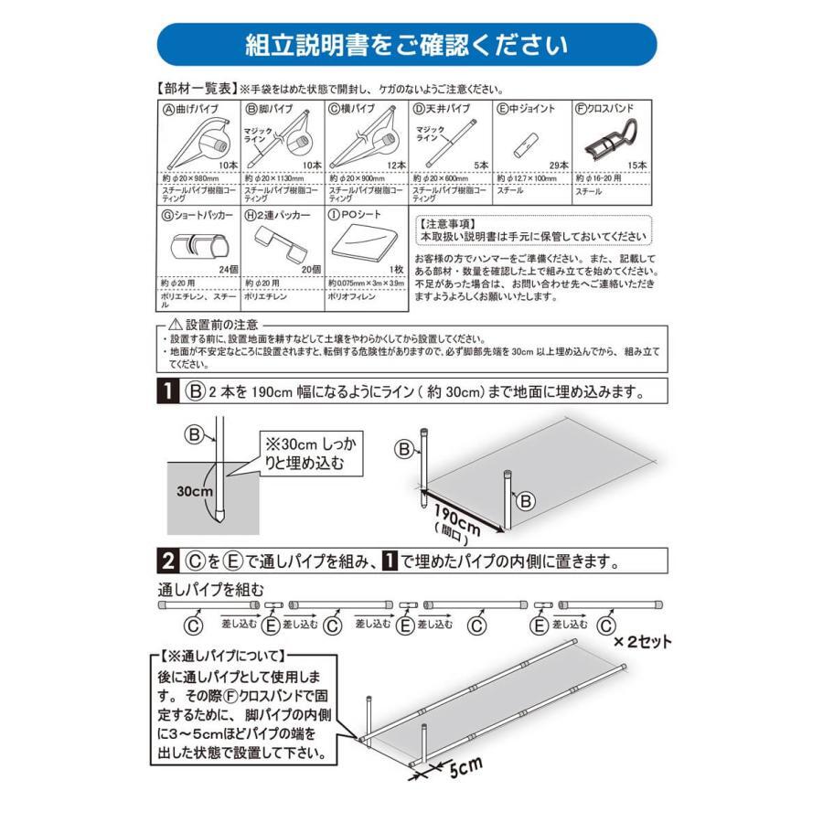 シートや支柱、組み立てに必要な部材はすべてセットになっています。