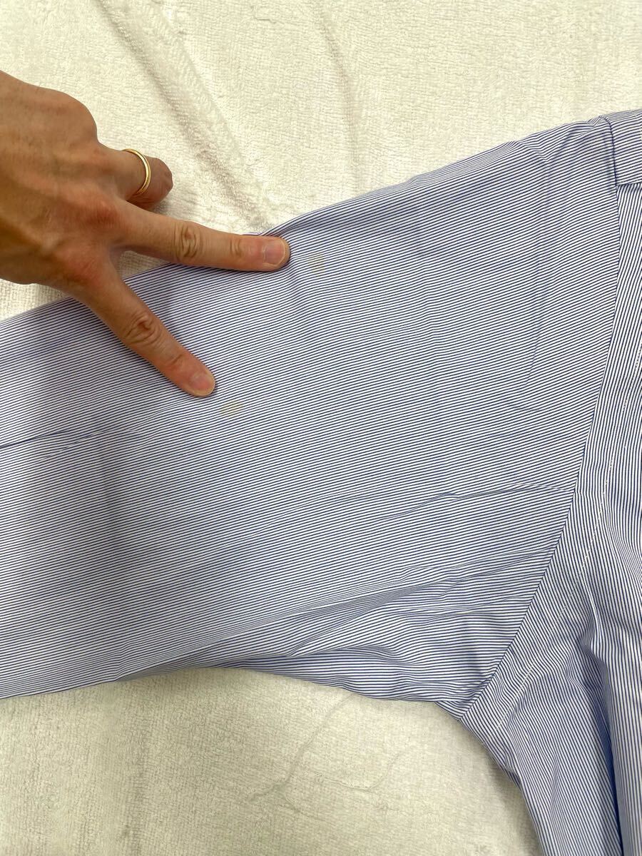 ・第二ボタンホールに裂けがあります。ボタンの使用に問題はありません(写真10を参照ください)