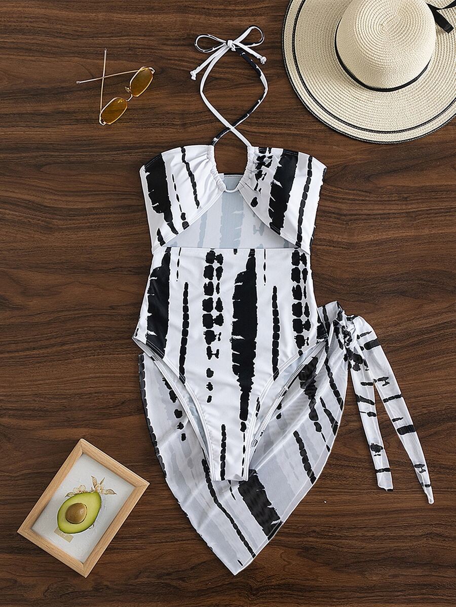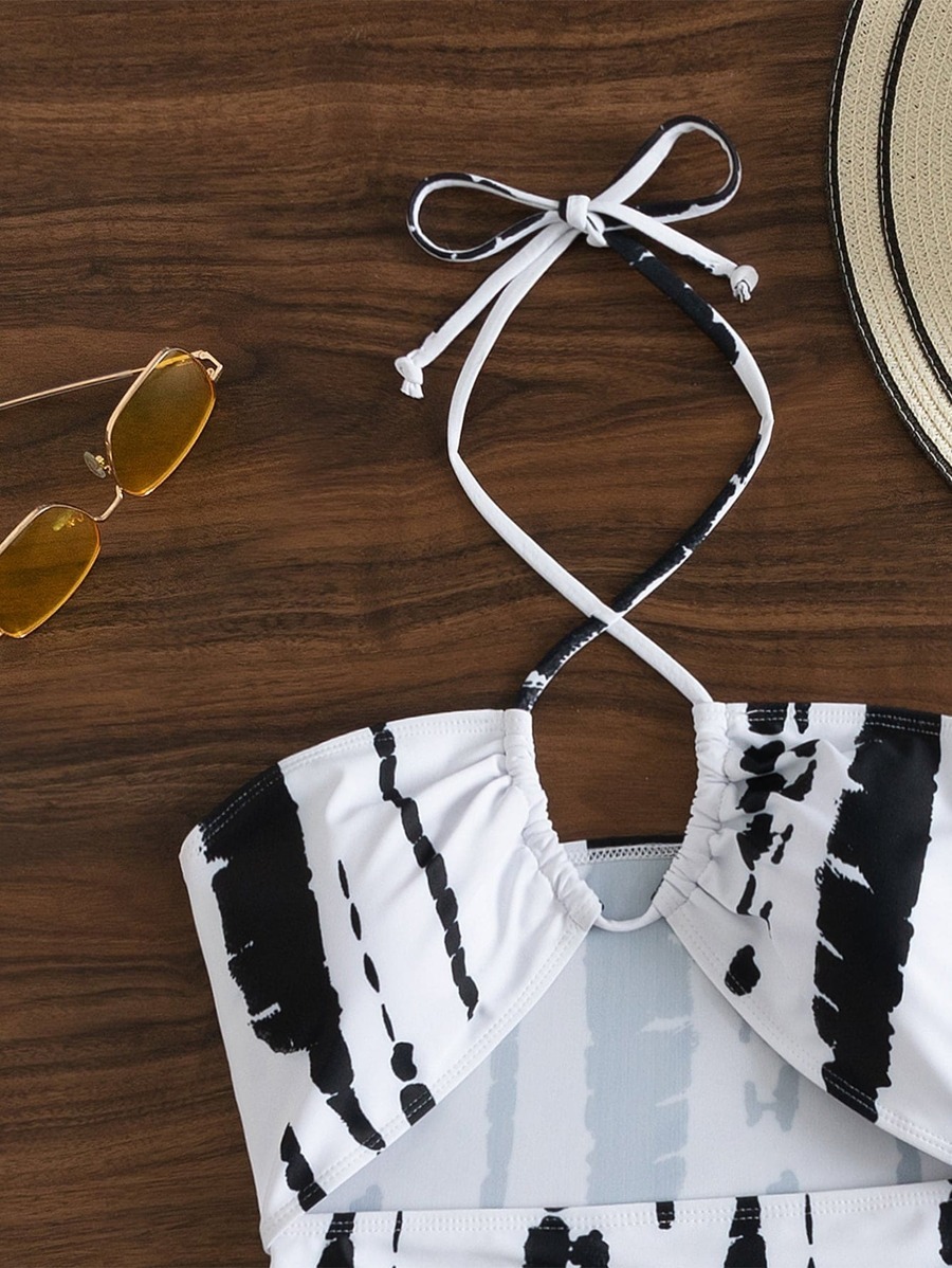 レディース 水着 ワンピース ランダム 絞り染め カットアウト タイバック & ビーチ スカート ワンピース水着