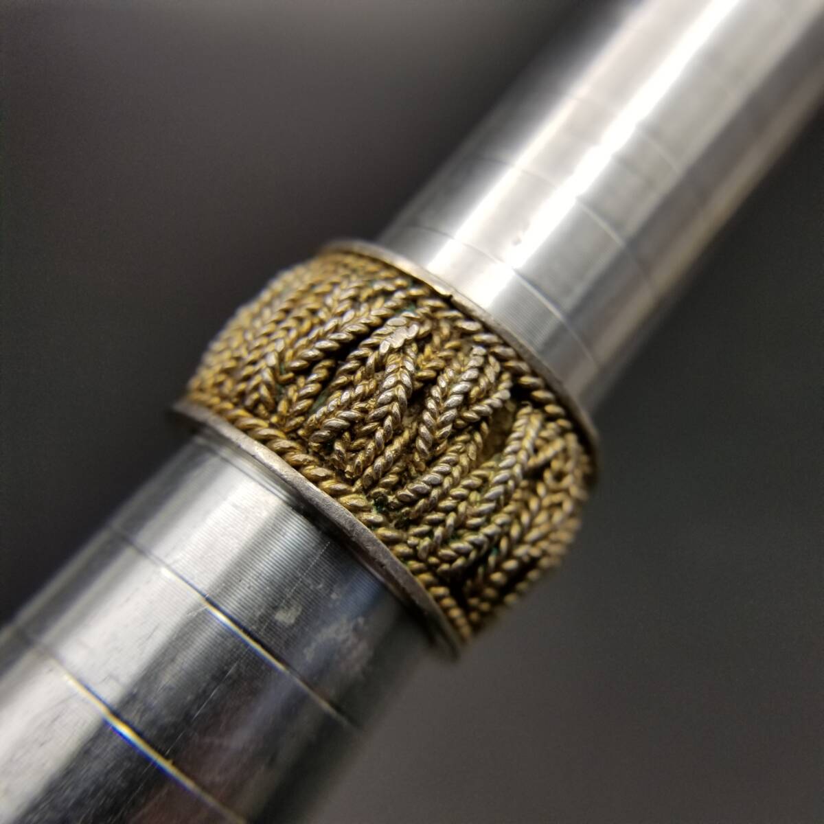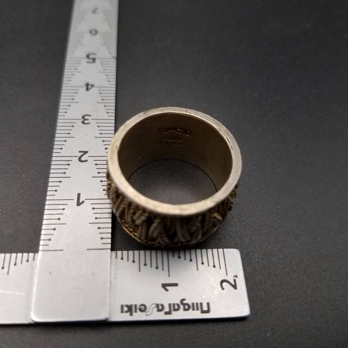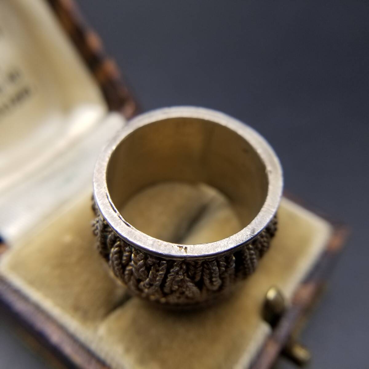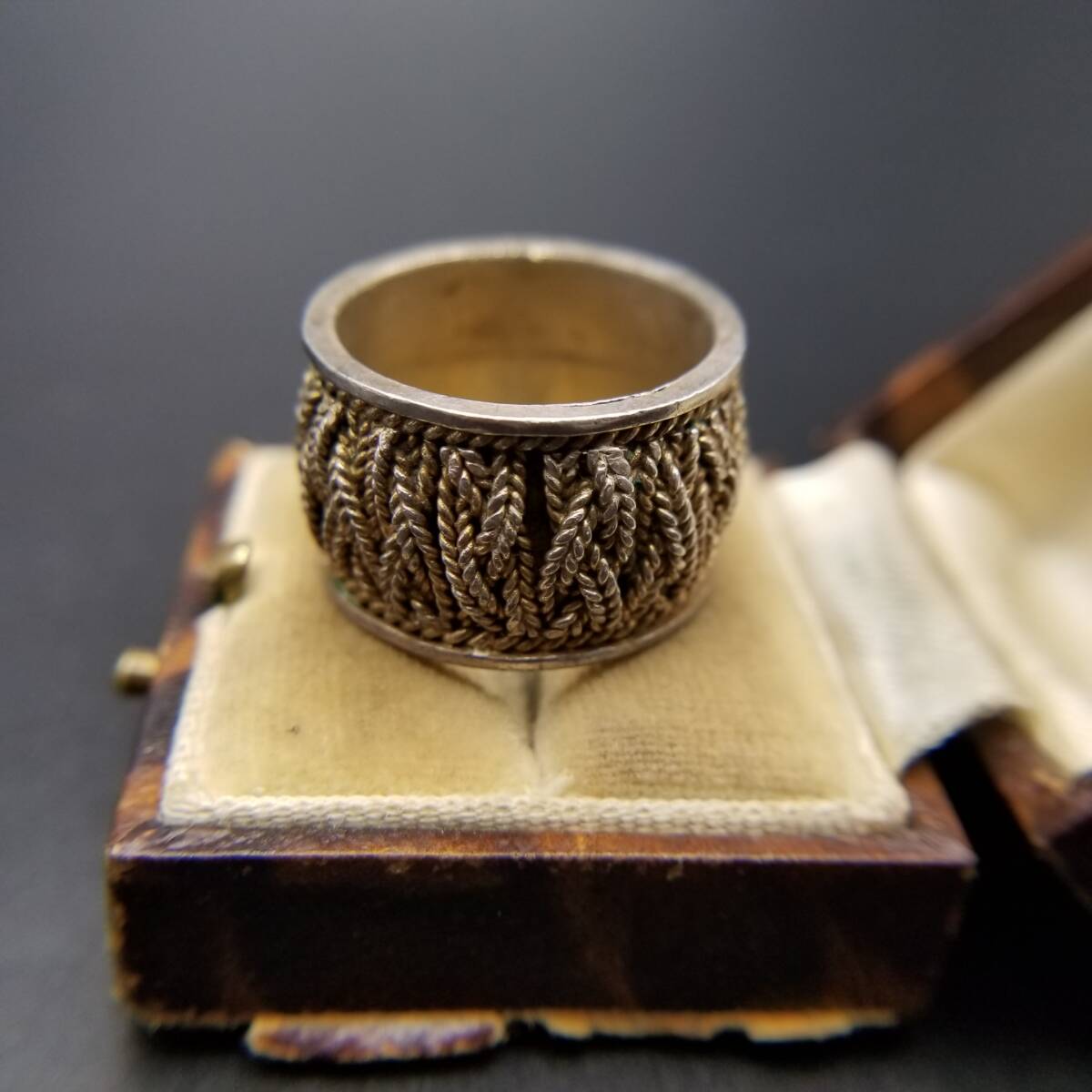 Topazio ポルトガル ヴィンテージ 編み込み ロープ 925 シルバー バンド リング 極幅広 銀 シガーバンド ゴールドトーン 大ぶり 存在感 R15-V
