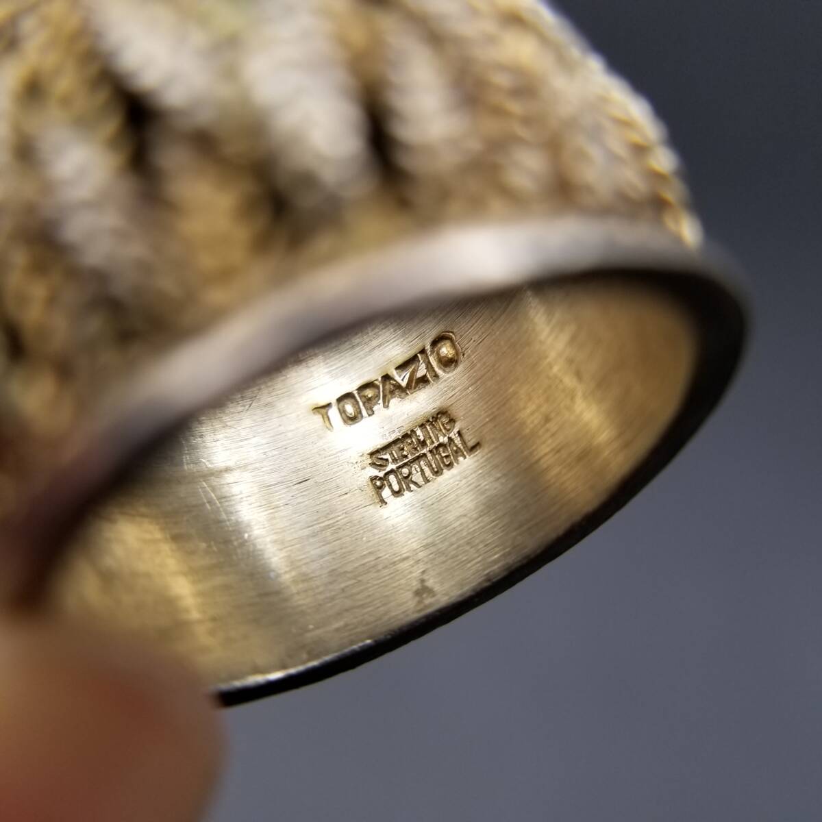 Topazio ポルトガル ヴィンテージ 編み込み ロープ 925 シルバー バンド リング 幅広 銀 シガーバンド ゴールドトーン 大ぶり 存在感 R15-V