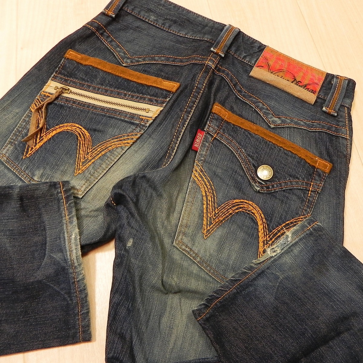 )182★ 日本製 EDWIN エドウィン 463XVS EXCLUSIVE VINTAGE ウエスタンジップ レギュラー ストレート W28 デニム ジーンズ ユーズド加工 ★