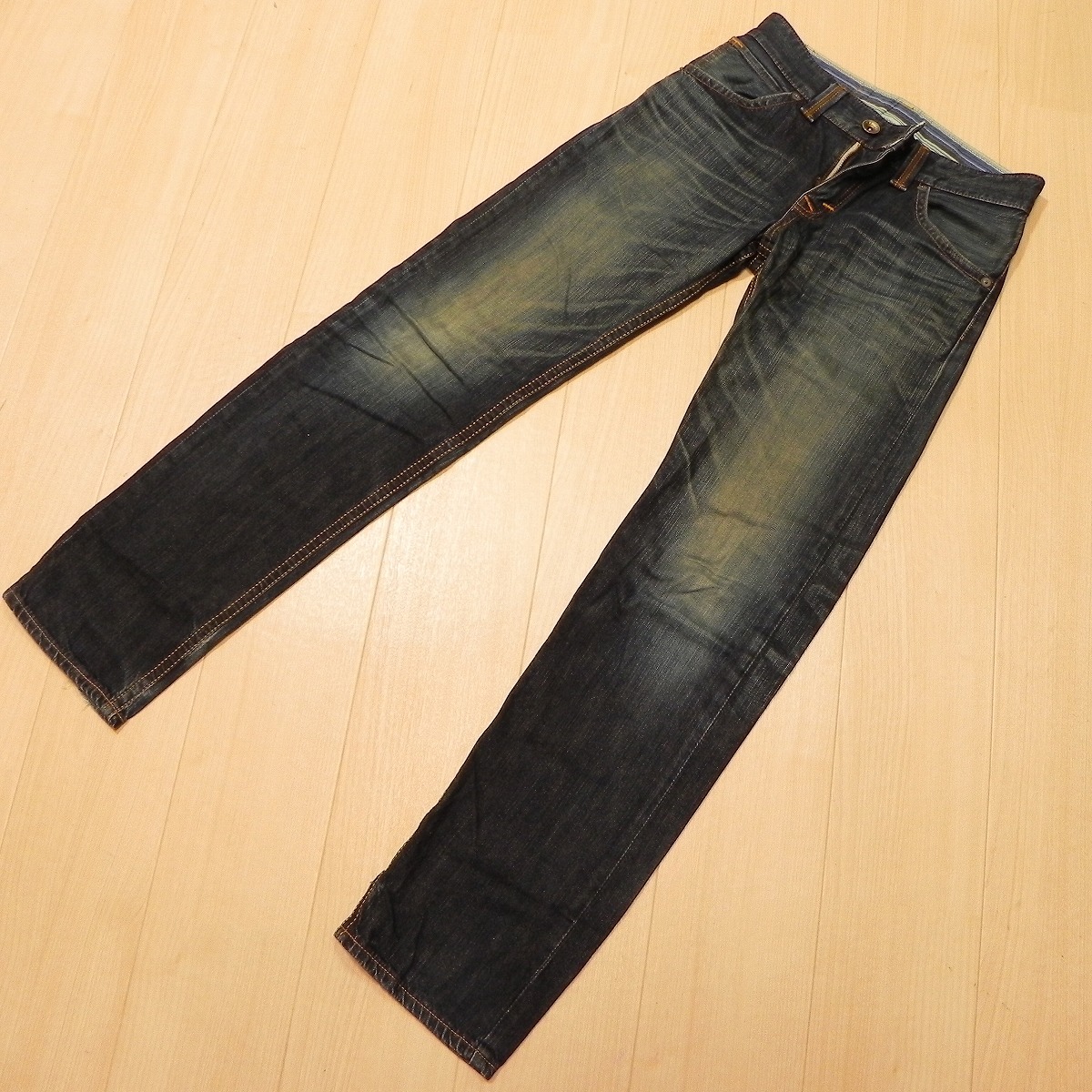 ●あくまでも古着のため、ノークレームノーリターンでお願いいたします。使用感、薄汚れがございます。 股下に5mmほどの擦れキズがございます。ユーズド加工が雰囲気抜群です。 裾はオリジナルのチェーンステッチで、やや擦れがございます。
