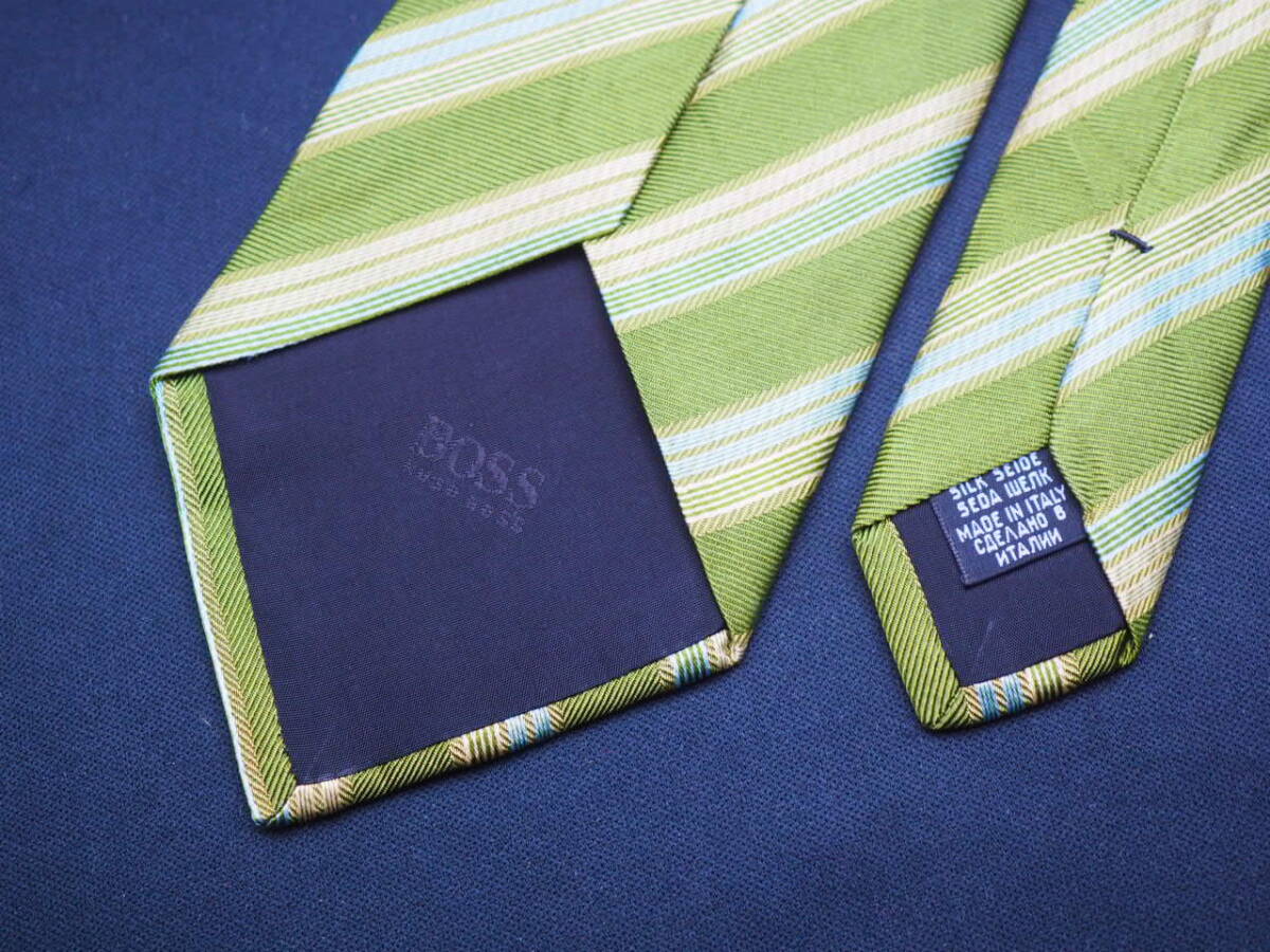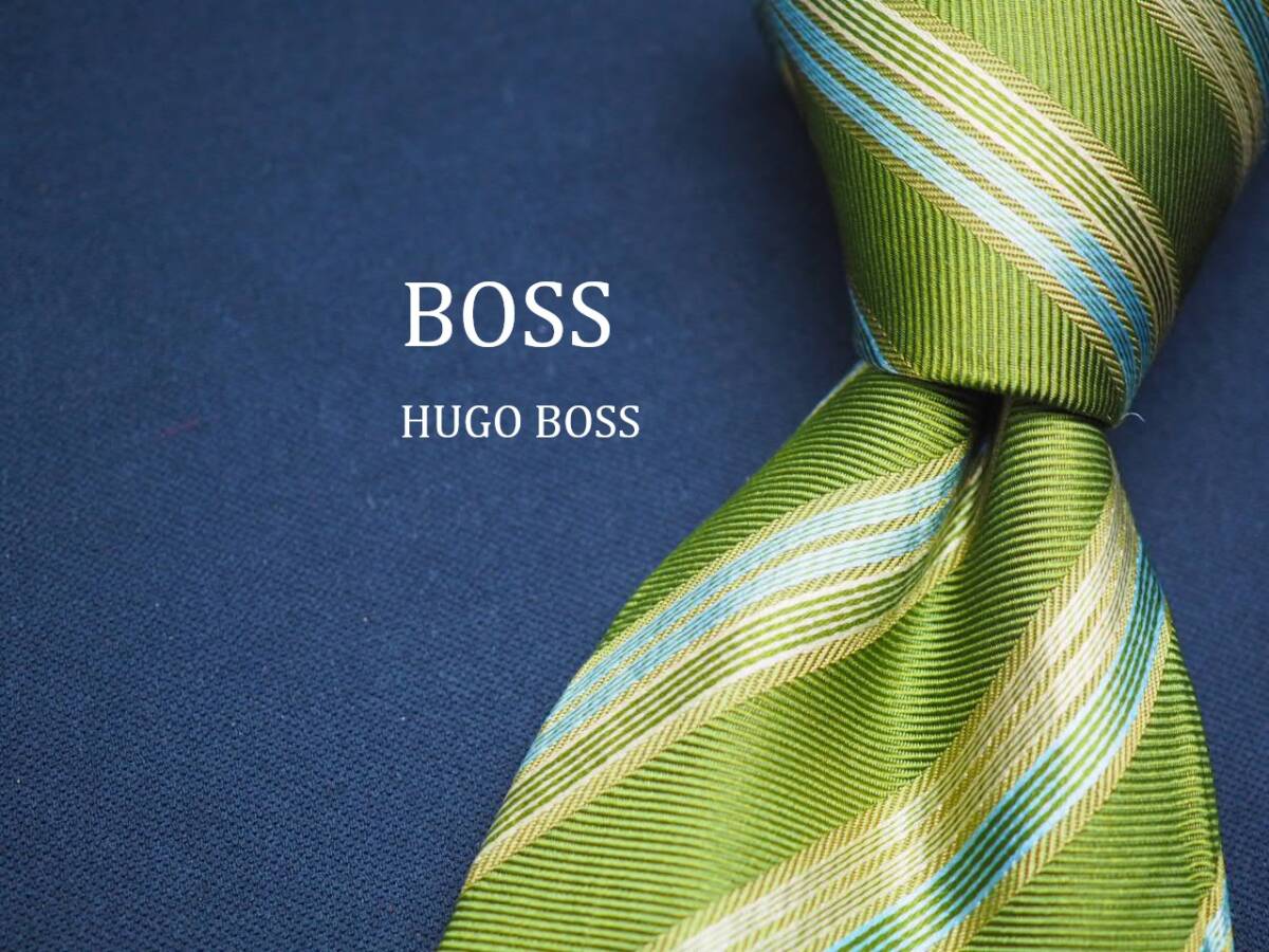 【HUGO BOSS ヒューゴ ボス】 E2872 グリーン系 SILK ブランド ネクタイ 古着 良品