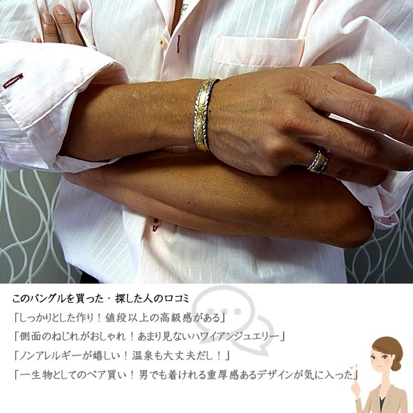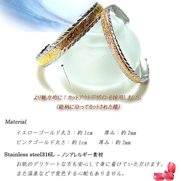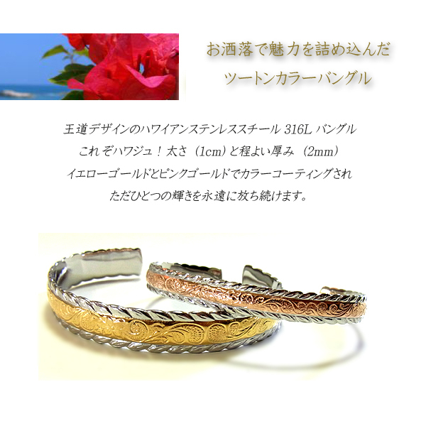 ★インスタ★ハワイアンジュエリー★アレルギー&温泉&海水浴OK★ステンレスバングル★シルバーツートンゴールド&ピンクゴールドプルメリア